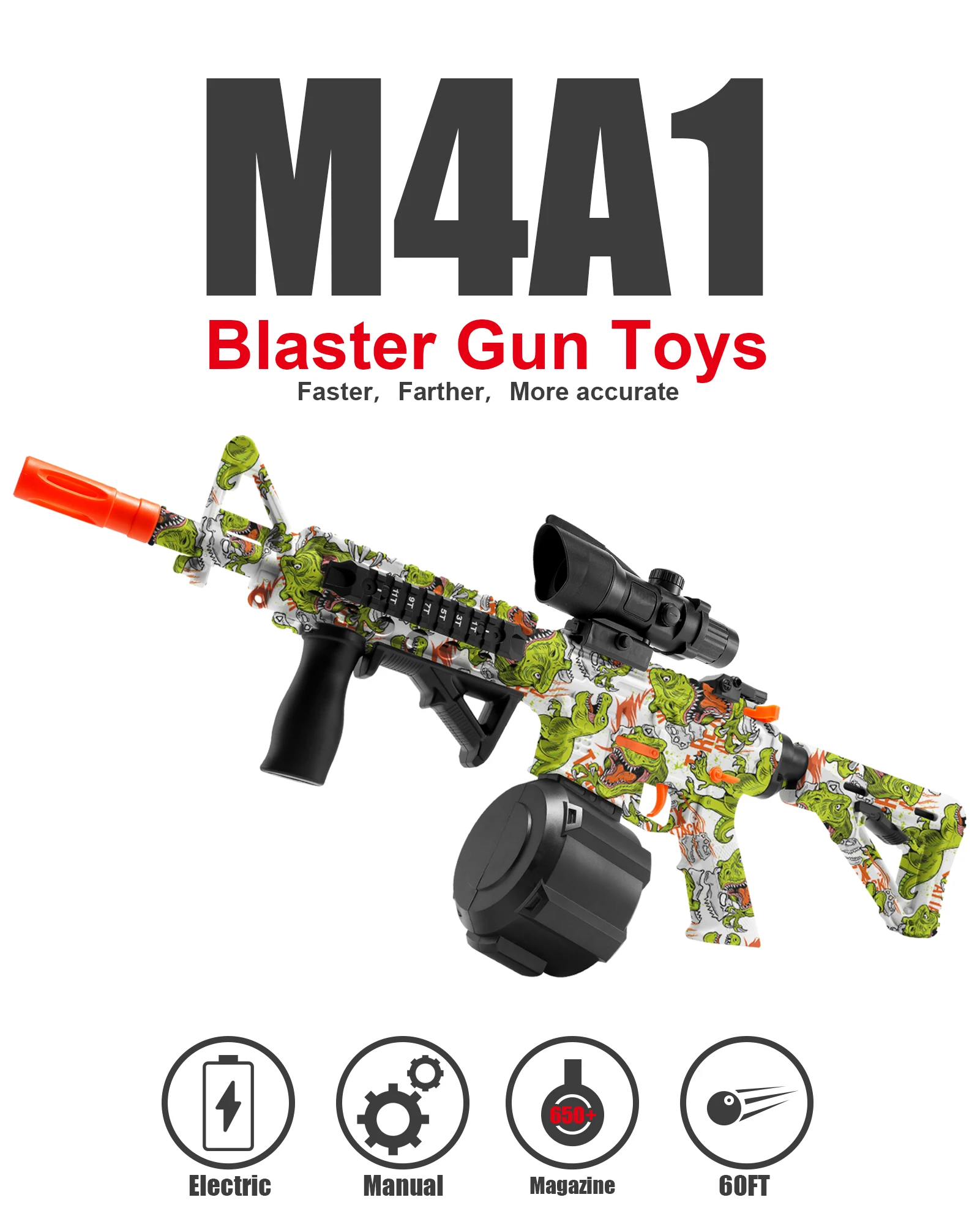 Embark on thrilling outdoor adventures with our high-performance M4A1 Blaster Gun Toys! Designed for maximum excitement, this unique gel blaster is Faster, Farther, and More Accurate. Featuring a vibrant dinosaur camouflage pattern, it’s the ultimate toy for dynamic and visually striking gel bead battles, perfect for enthusiasts who want to stand out!