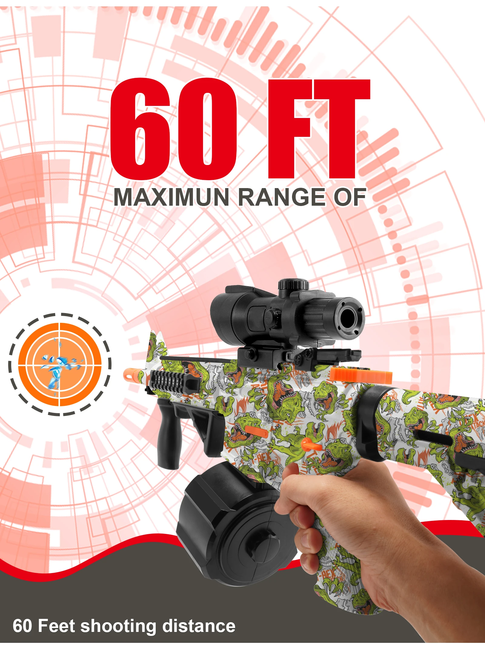 - Exceptional 60-Foot Maximum Range: Outmaneuver and outshoot your opponents from a distance! This blaster boasts an impressive maximum shooting range of 60 feet, allowing you to hit targets accurately and maintain control of the battlefield.