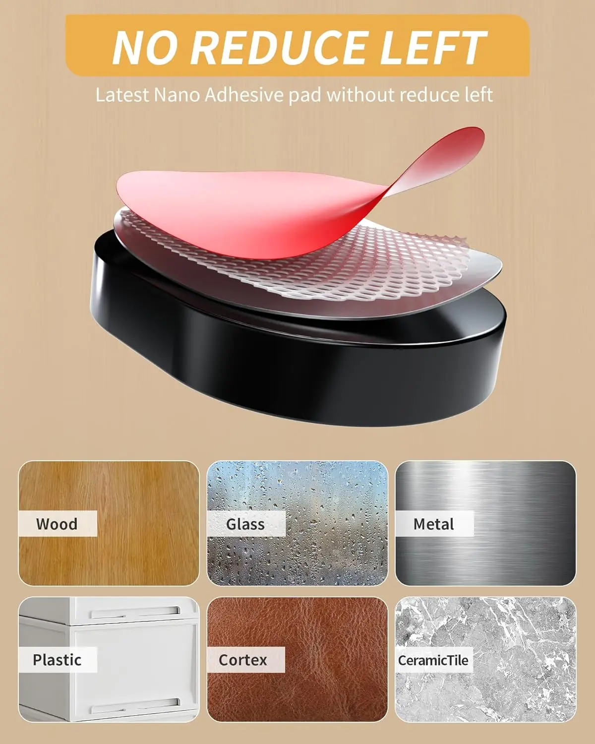- Works on smooth wood, metal, glass, and plastic surfaces