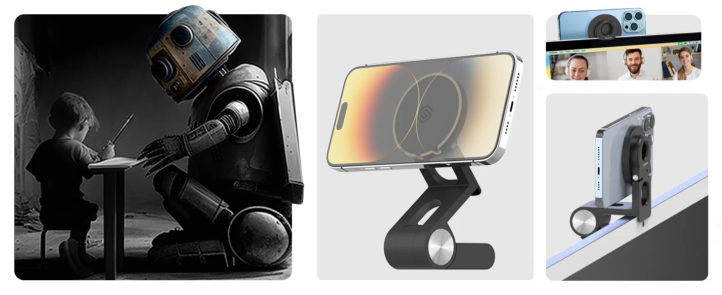 SODI Continuity Camera Mount for Desktop Monitor & iMac, Detachable iPhone Webcam Mount, Adjustable Magnetic Phone Stand for iPhone 16 Pro Max Plus Mini 16/15/14/13/12 and macOS Ventura