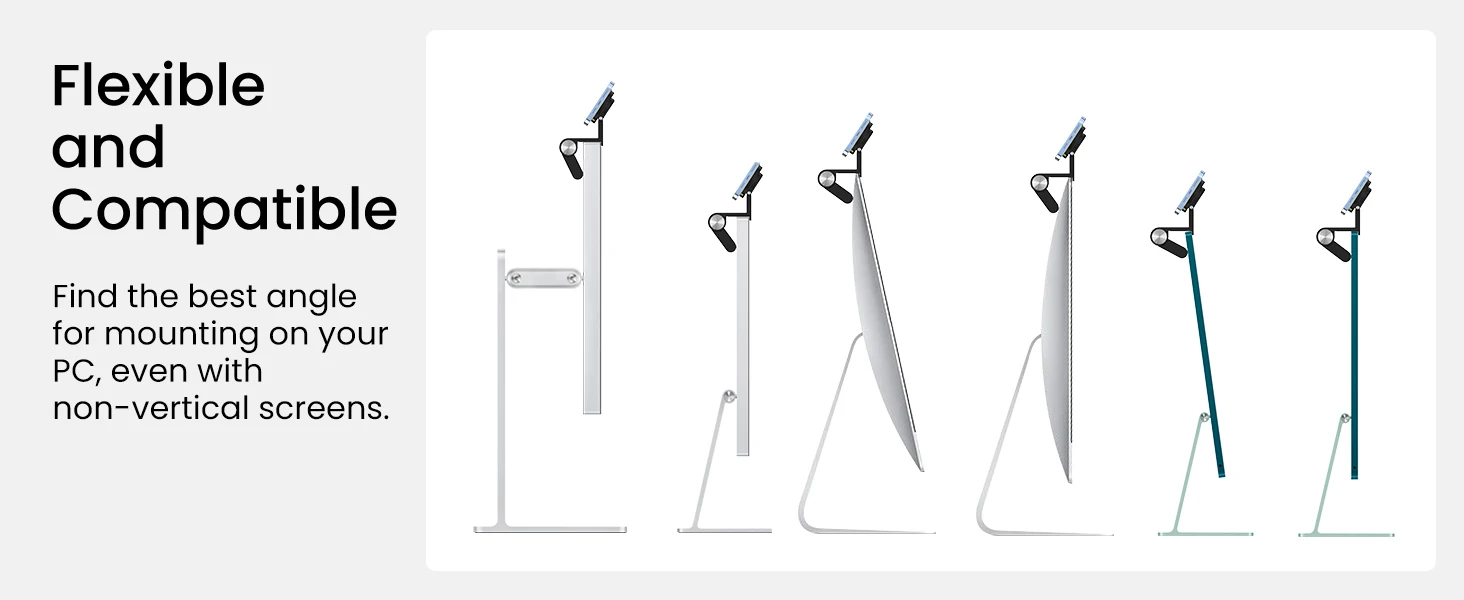 3-in-1 versatile use: Works as a webcam mount on MacBook or iMac and most desktop monitors. Easily attach and tilt for the ideal viewing angle. Also functions as a hands-free phone stand for your desk.