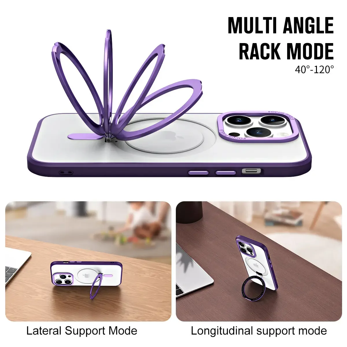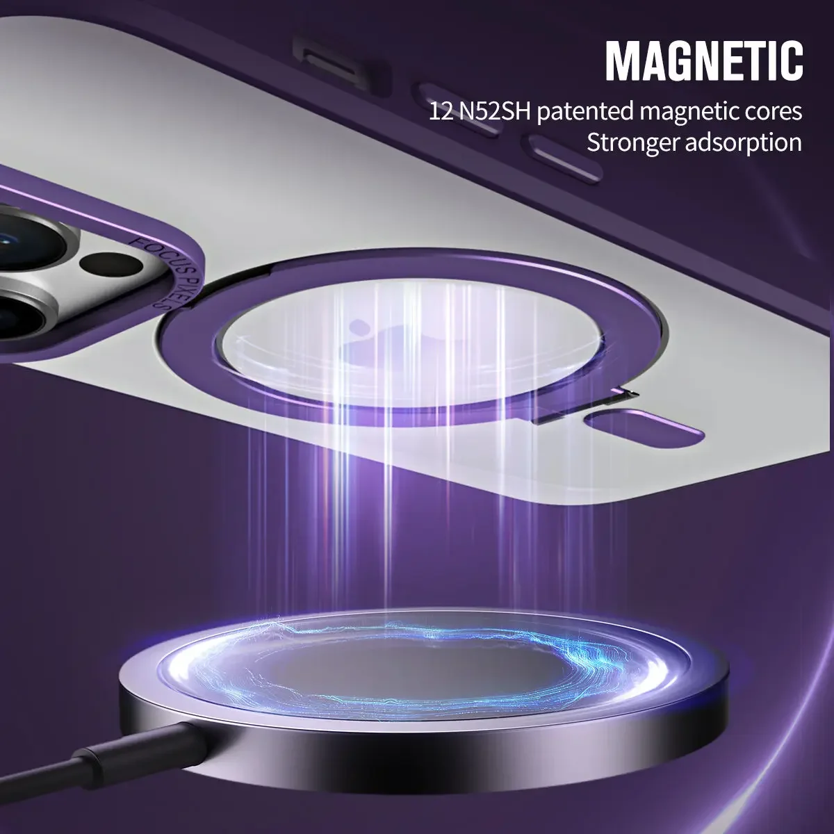 Upgrade your daily carry with a sleek protective case built for convenience. This case combines a strong magnetic ring for MagSafe-style charging and accessories with a fold-out ring stand, so you can watch, scroll, or video chat hands-free.