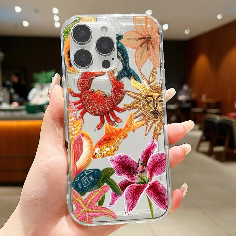 Clear Sun Marine Floral Eyes Phone Case for iPhone 16 15 14 13 12 11 Pro Max X XR XS Max 7 8 Plus Anti-Fall Soft TPU Back Cover