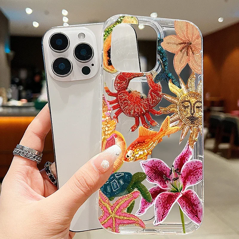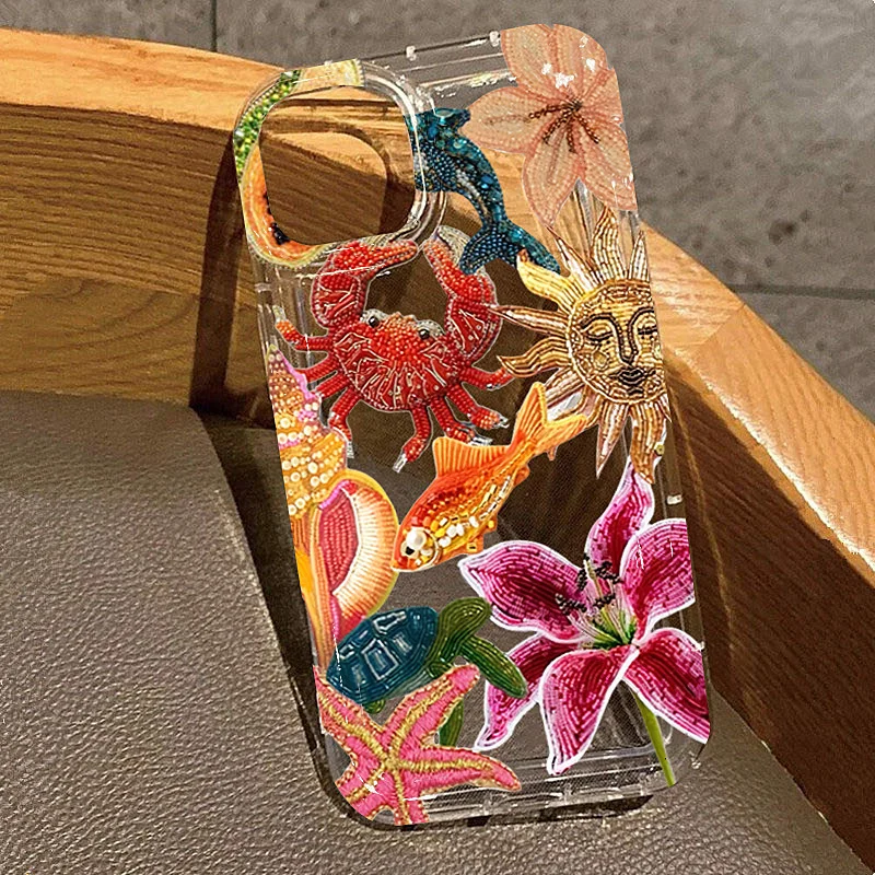 Clear Sun Marine Floral Eyes Phone Case for iPhone 16 15 14 13 12 11 Pro Max X XR XS Max 7 8 Plus Anti-Fall Soft TPU Back Cover