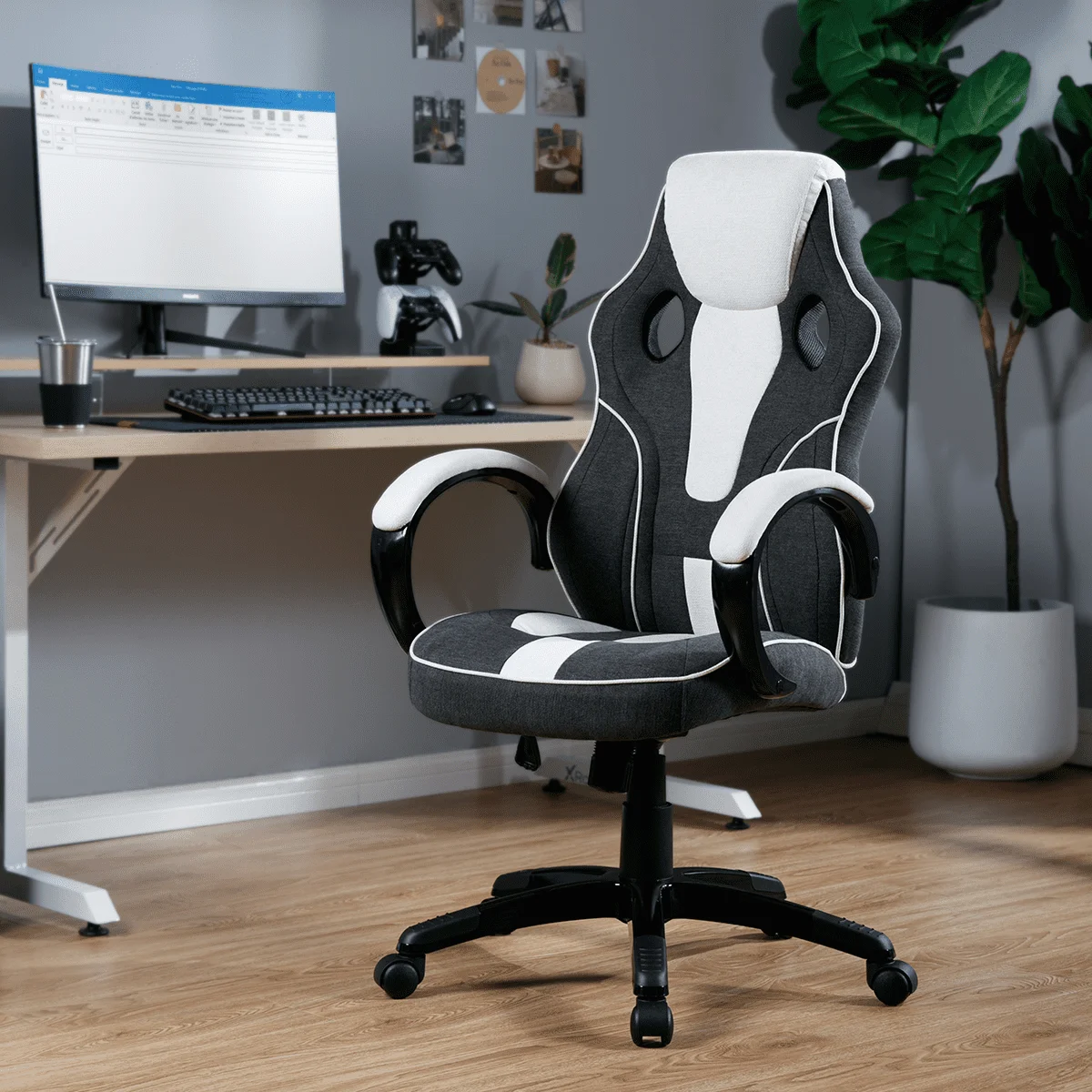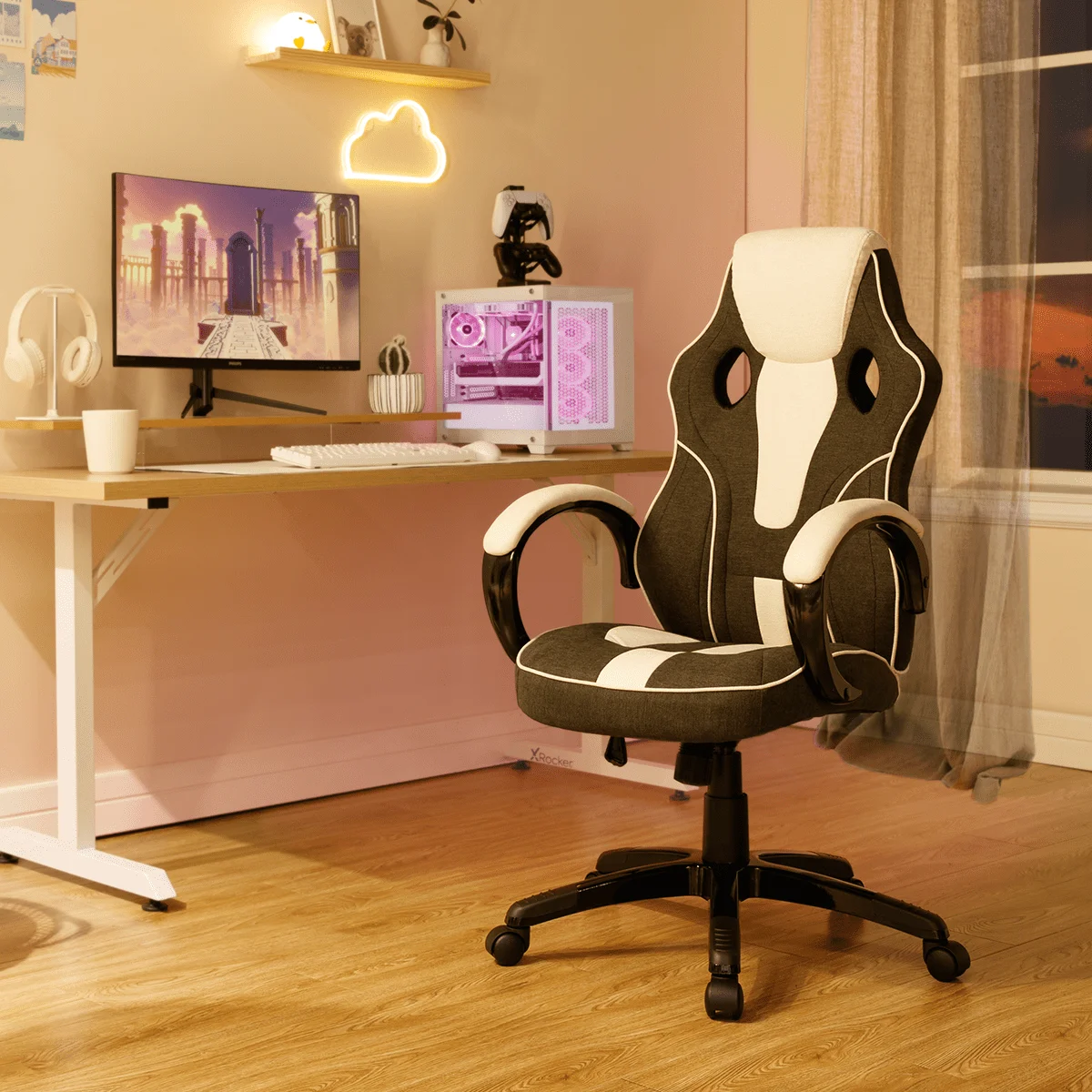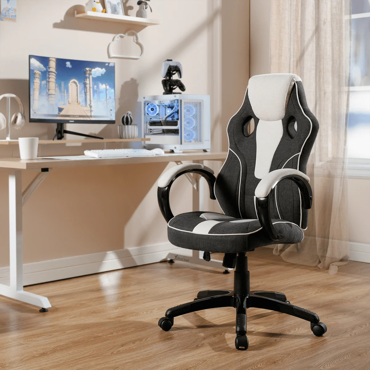 Premium Fabric Finish: The chair is upholstered in high-quality fabric that not only adds a touch of sophistication to your gaming setup but also provides lasting durability. Enjoy a soft, plush feel while maintaining a sleek aesthetic that complements any gaming or office space.
