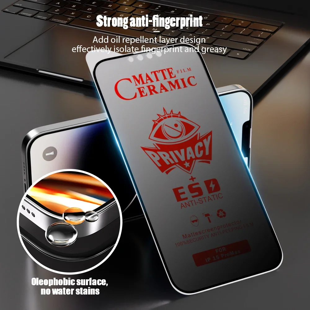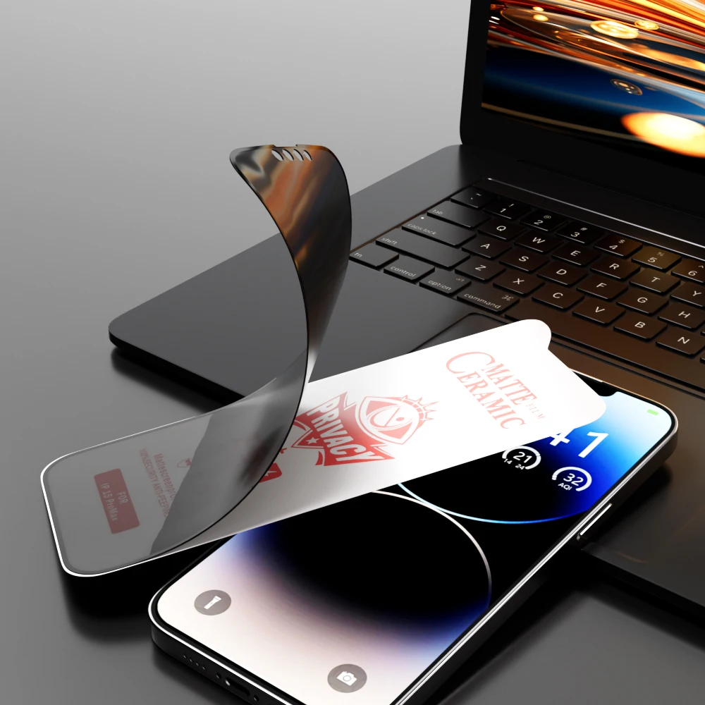 Soft ceramic film with a matte privacy finish, available for multiple iPhone model options.