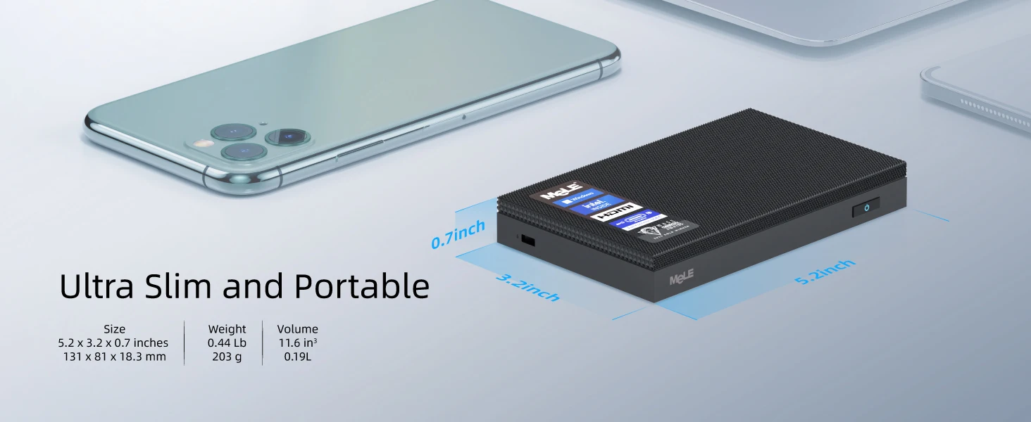 MeLE Quieter 4C Fanless Mini PC is a compact and powerful computer that combines speed, silence, and intelligence. With Windows 11 Pro, it offers a smooth and stable operating experience. Powered by the Intel N100 processor, it delivers efficient computing for all your needs.