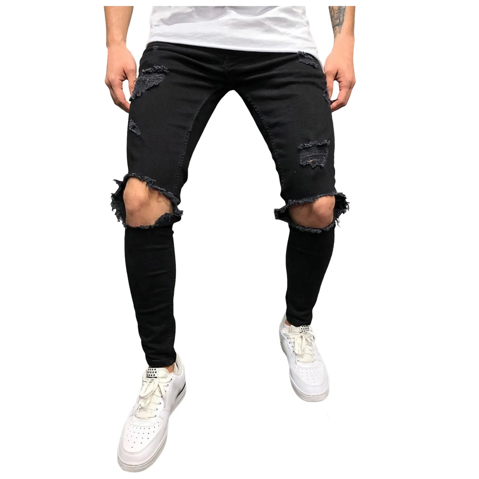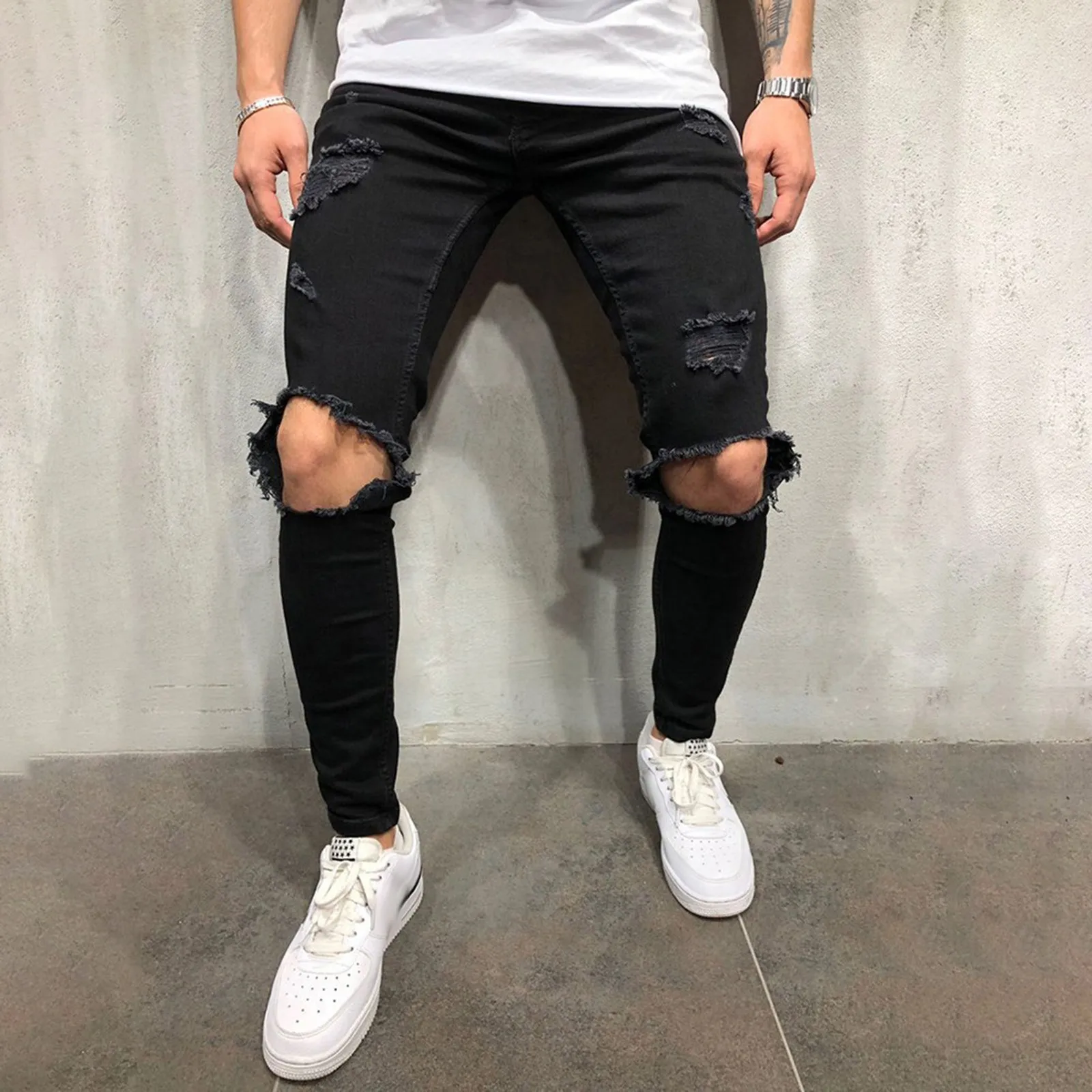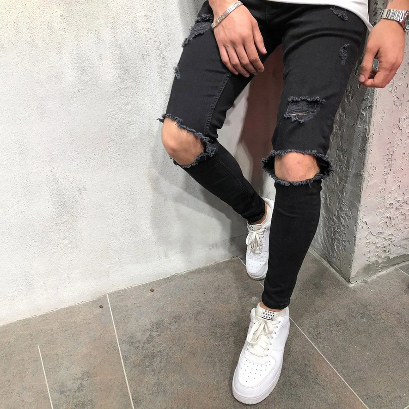 Men Slim Fit Ripped Jeans Punk Streetwear