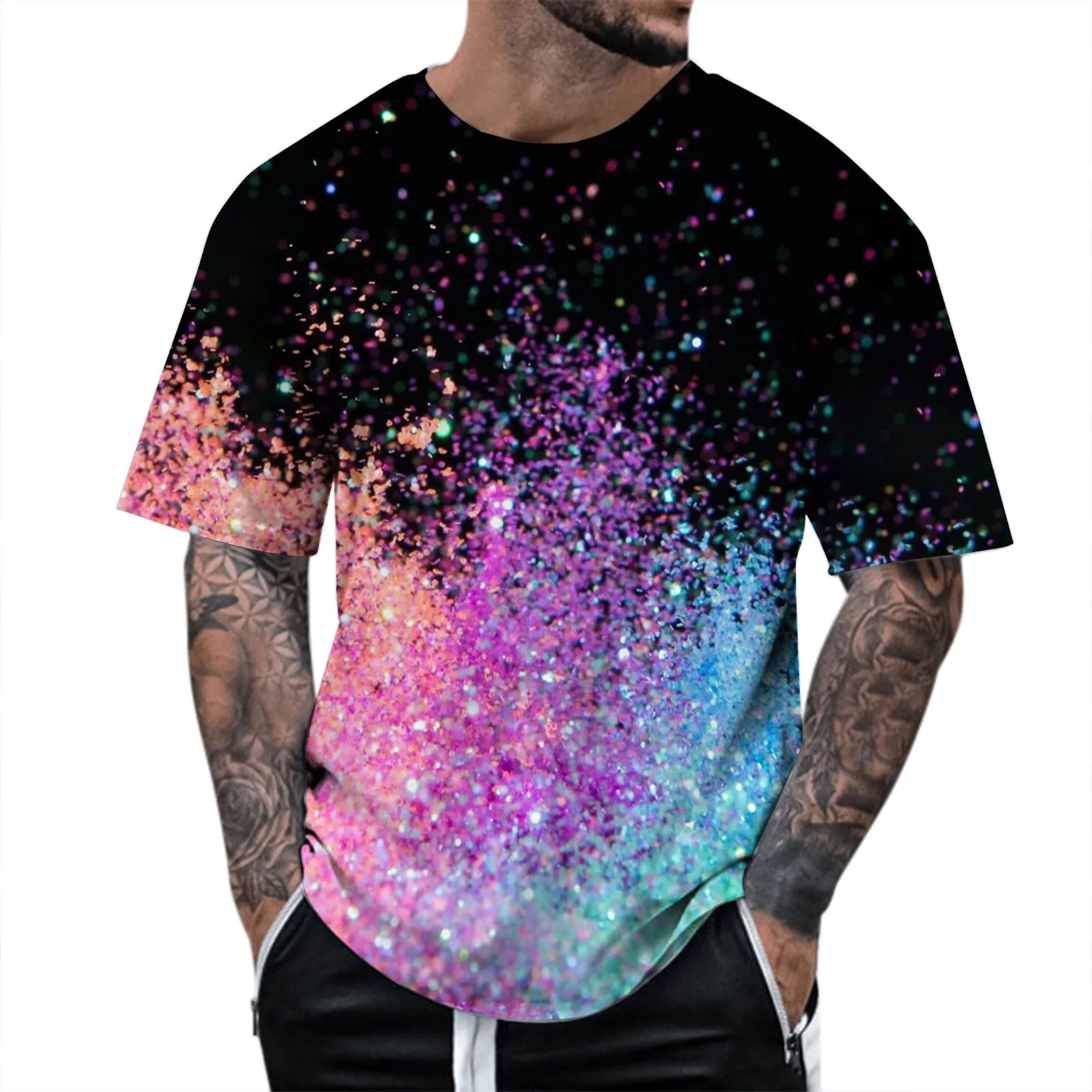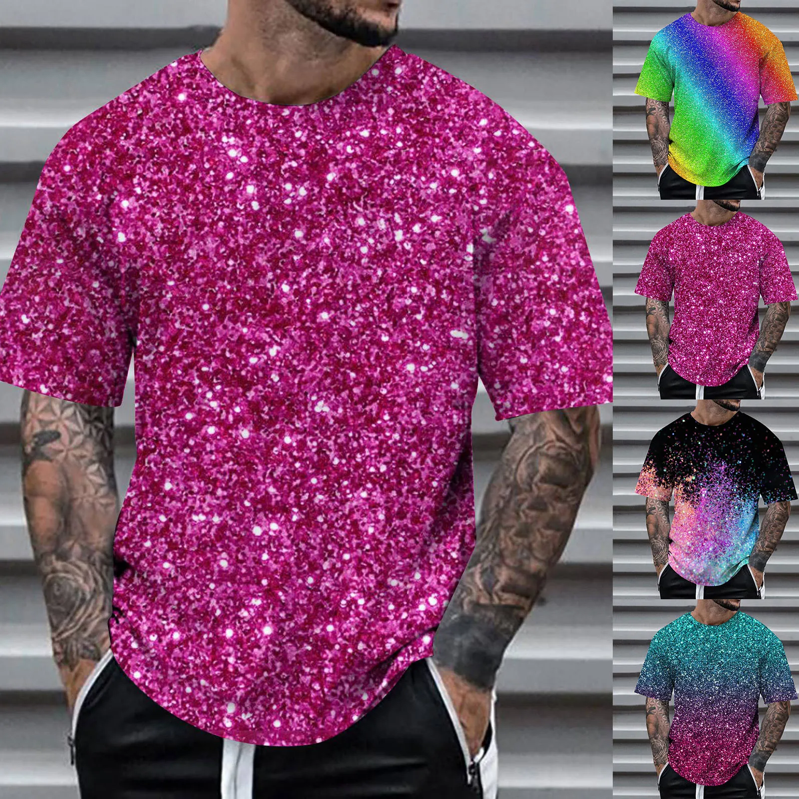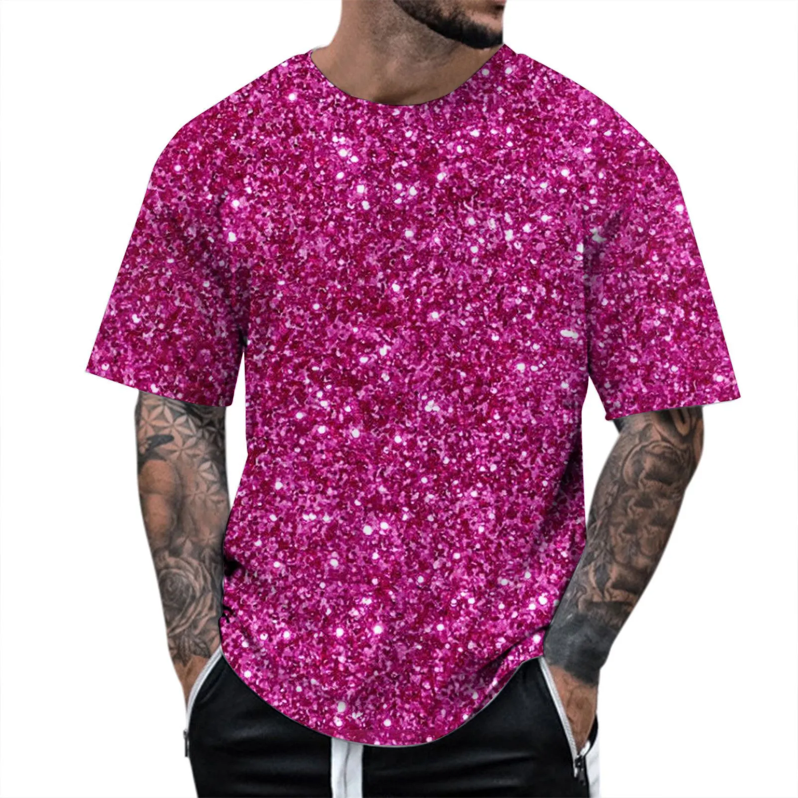 Mens 3D Sequin Short Sleeve Performance Shirt