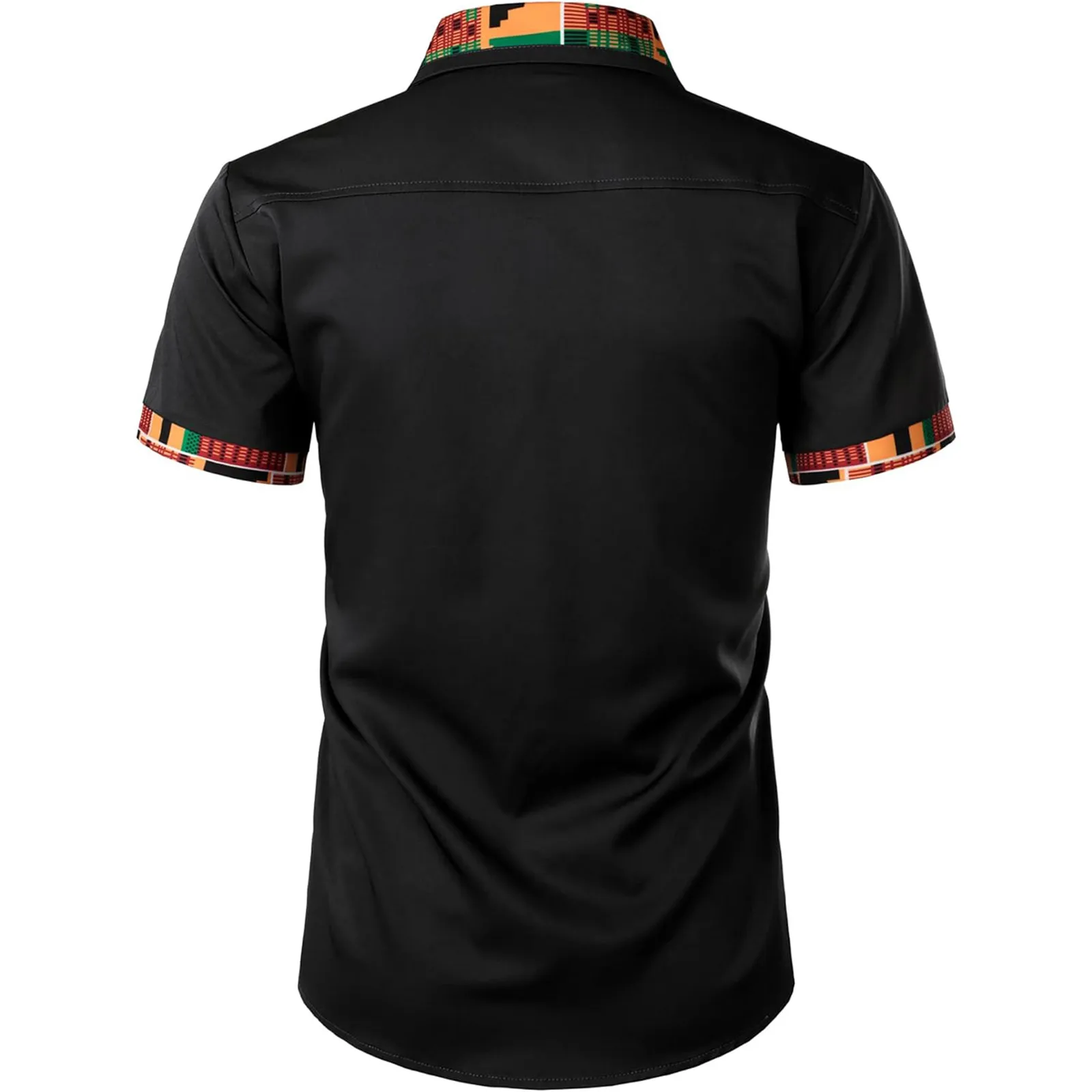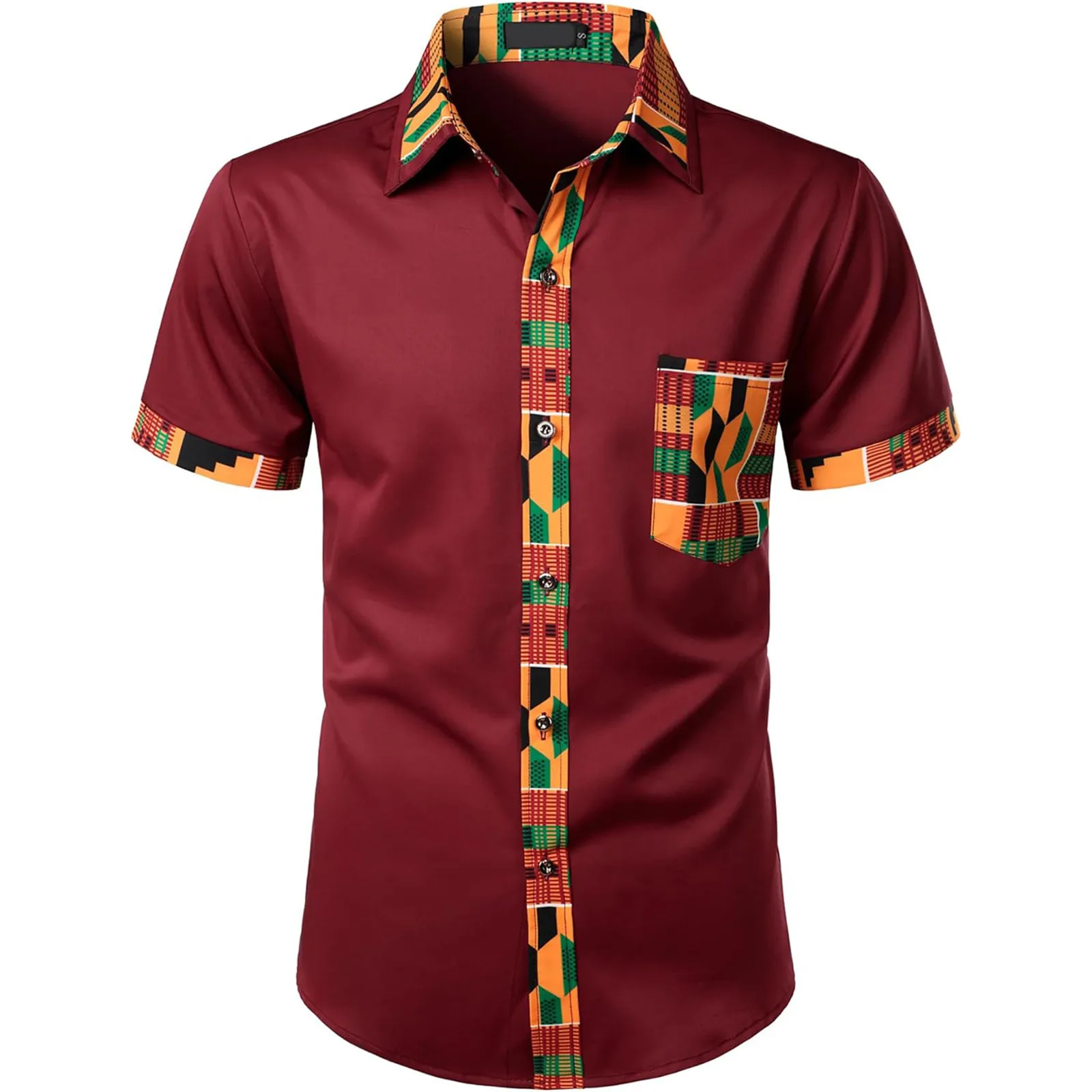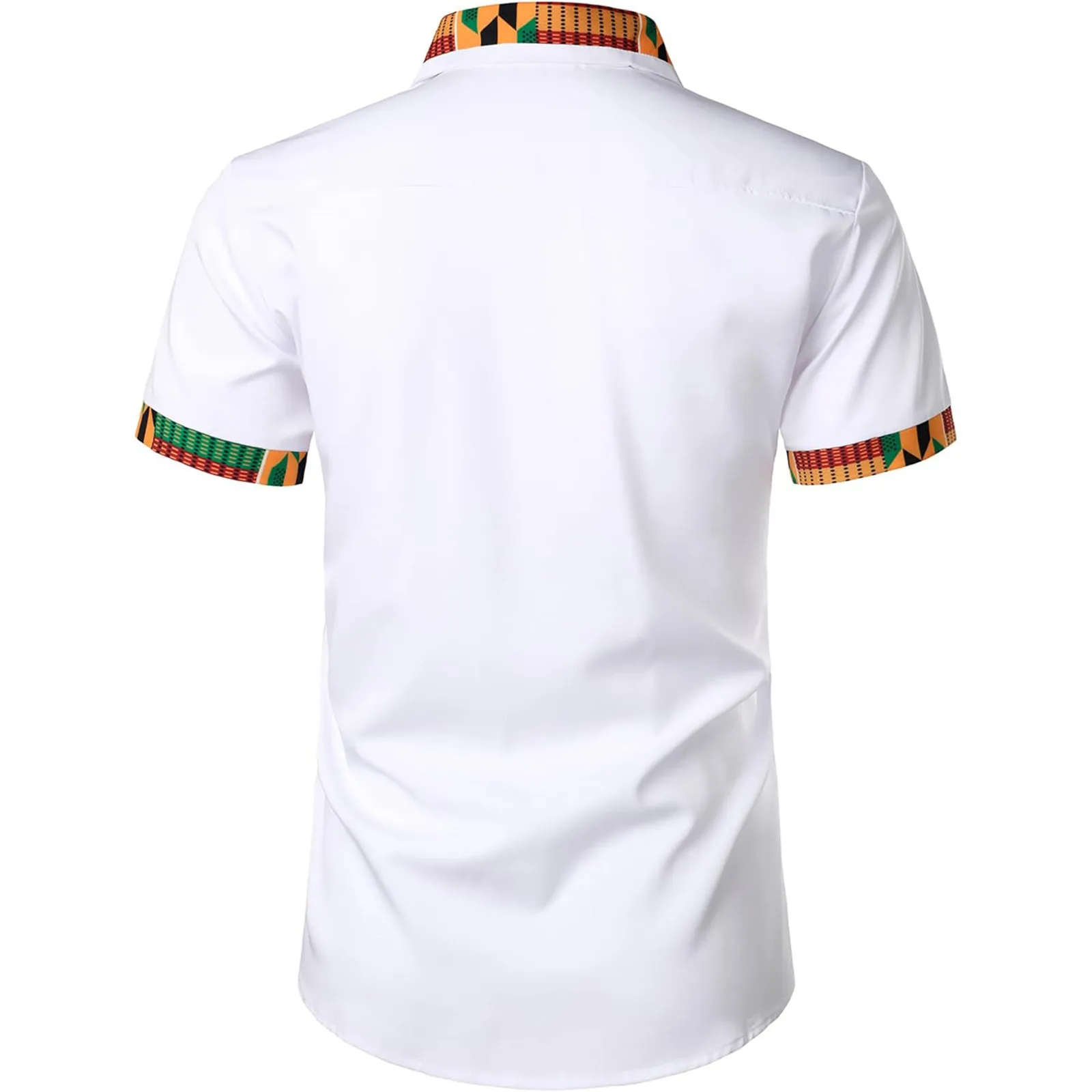 Men’s African Short Sleeve Printed Patchwork Design Button Up Shirt