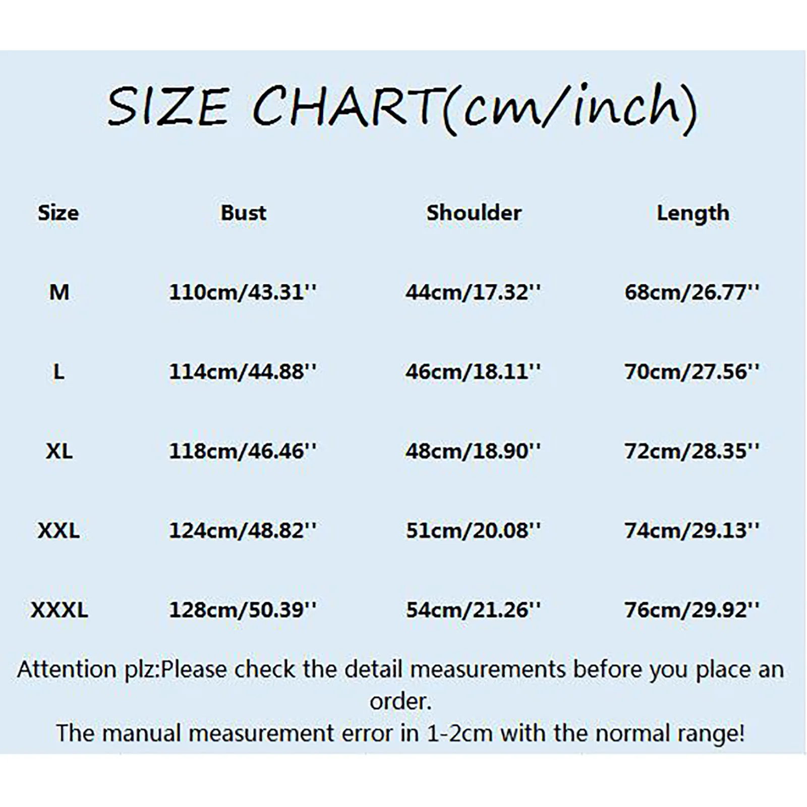 XXXL: Bust: 128cm/50.39”, Shoulder: 54cm/21.26”, Length: 76cm/29.92”
