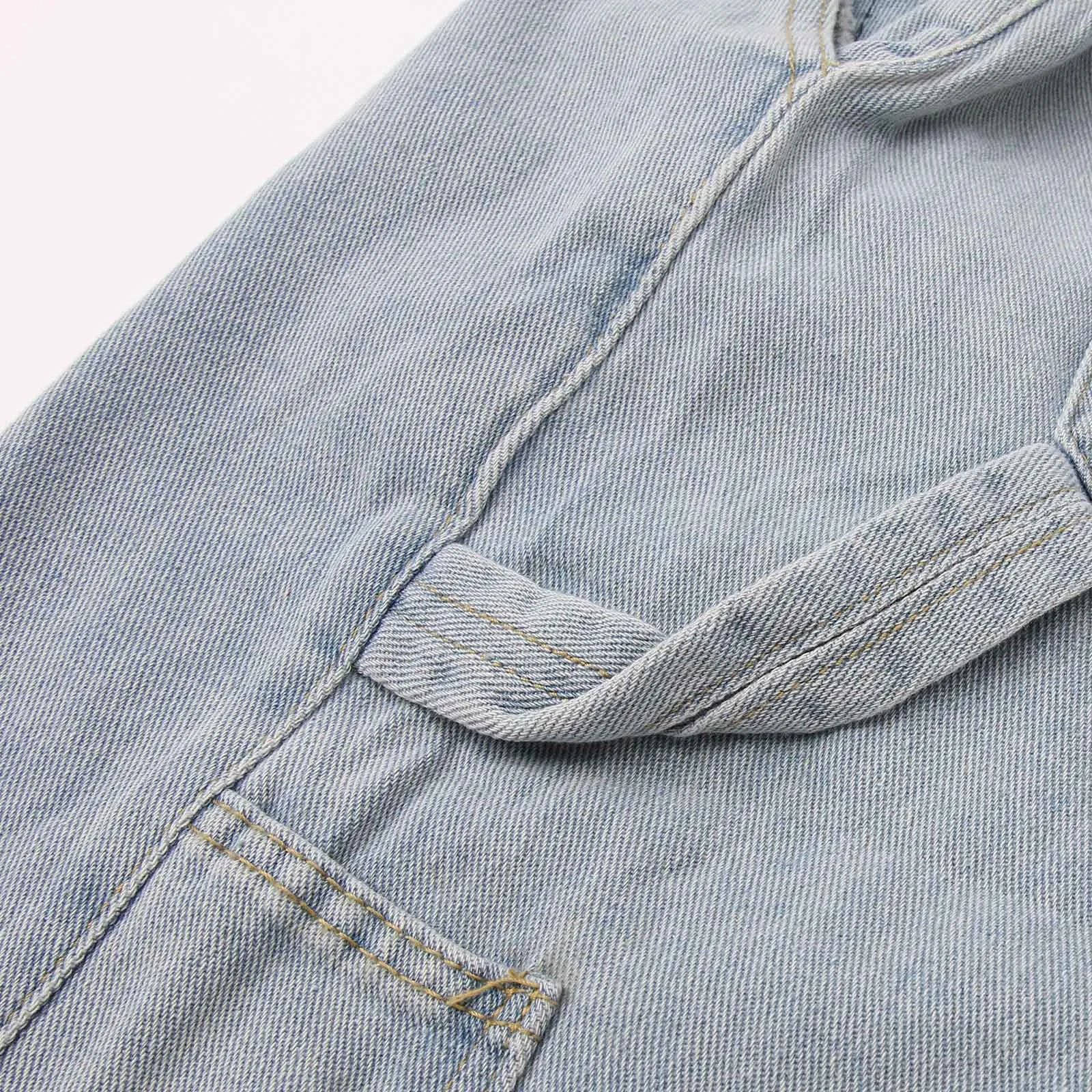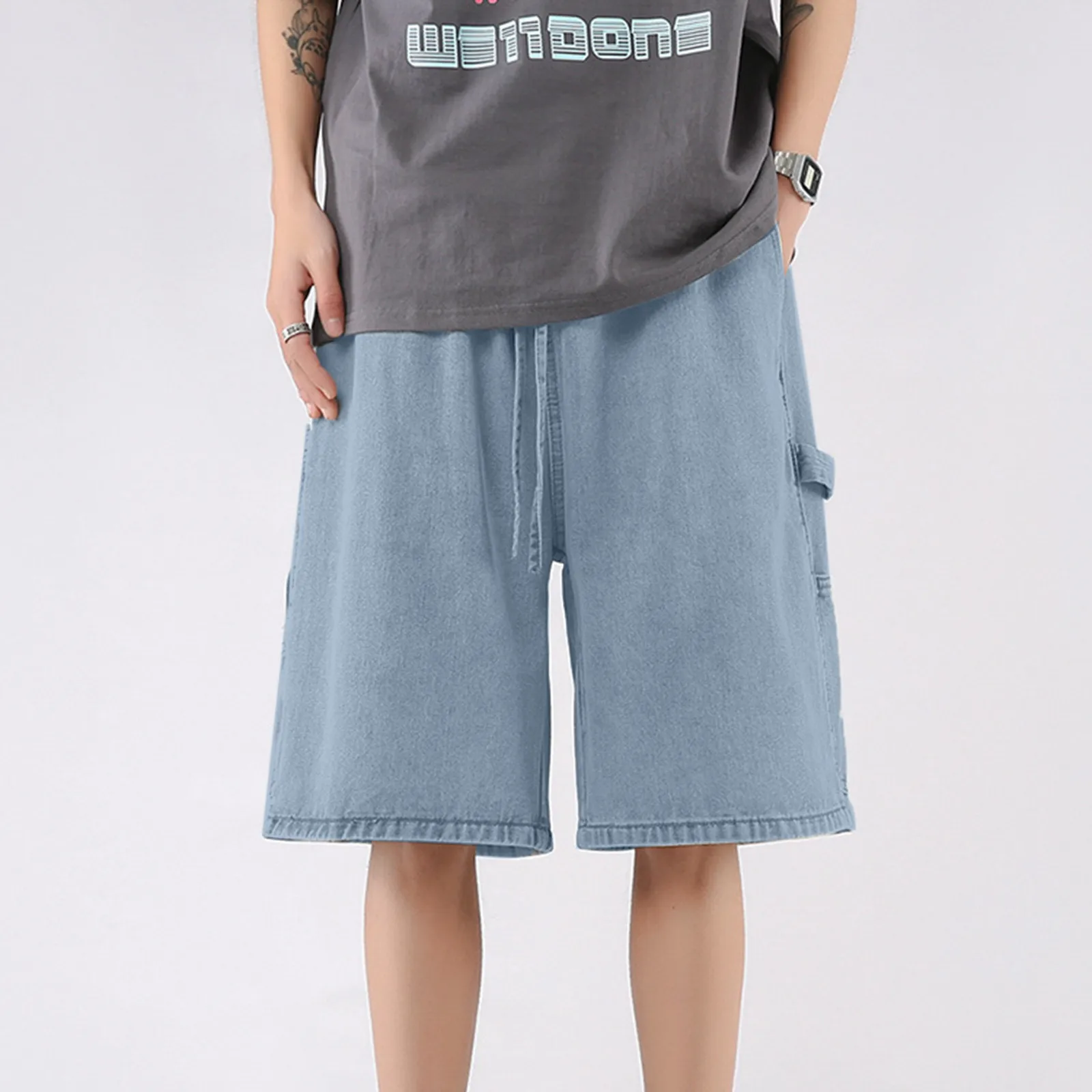 Design: Unisex denim shorts with a loose fit, comfortable and long. Features multiple pockets. Influenced by Japanese fashion, K-pop, techwear, punk, gothic, rock, and club styles.