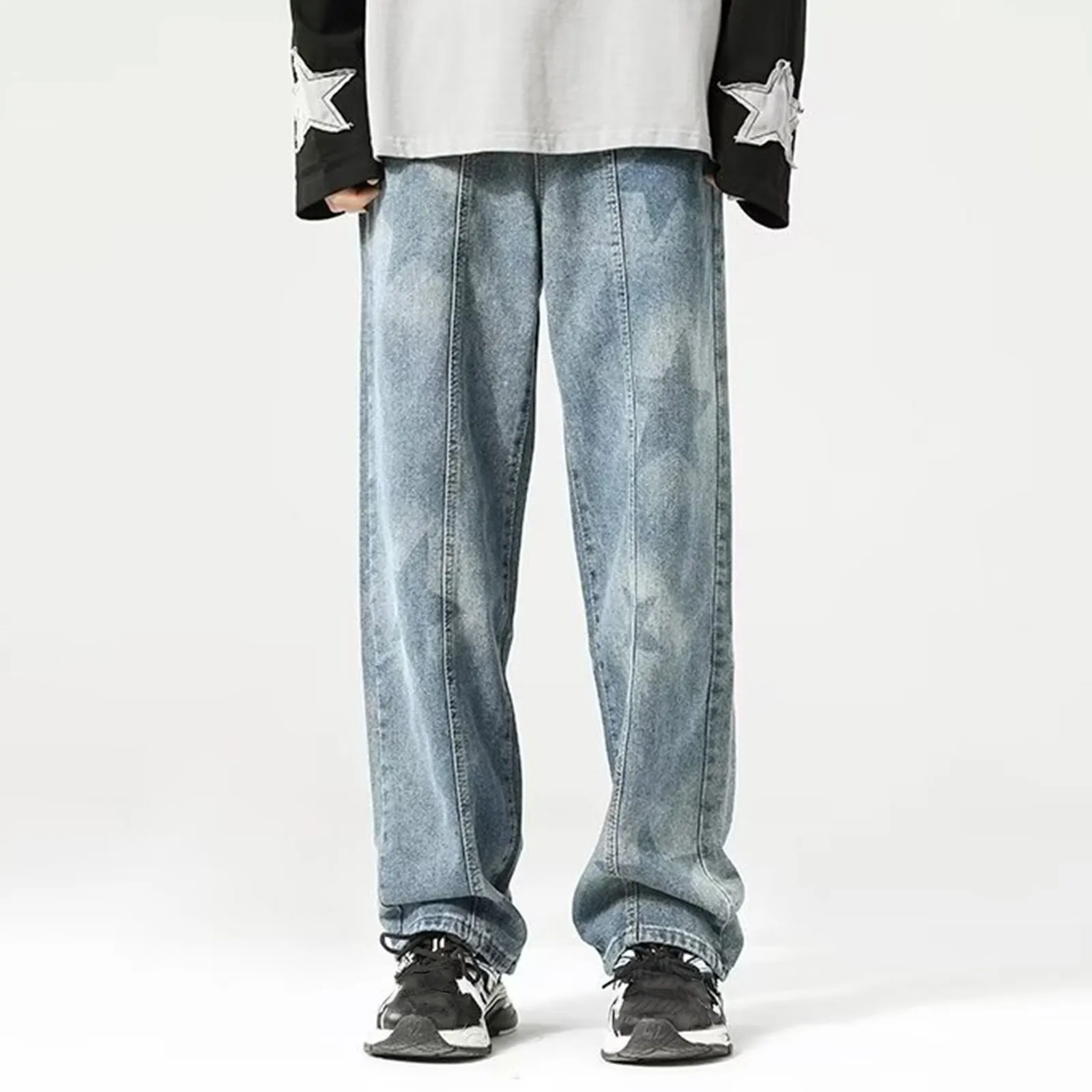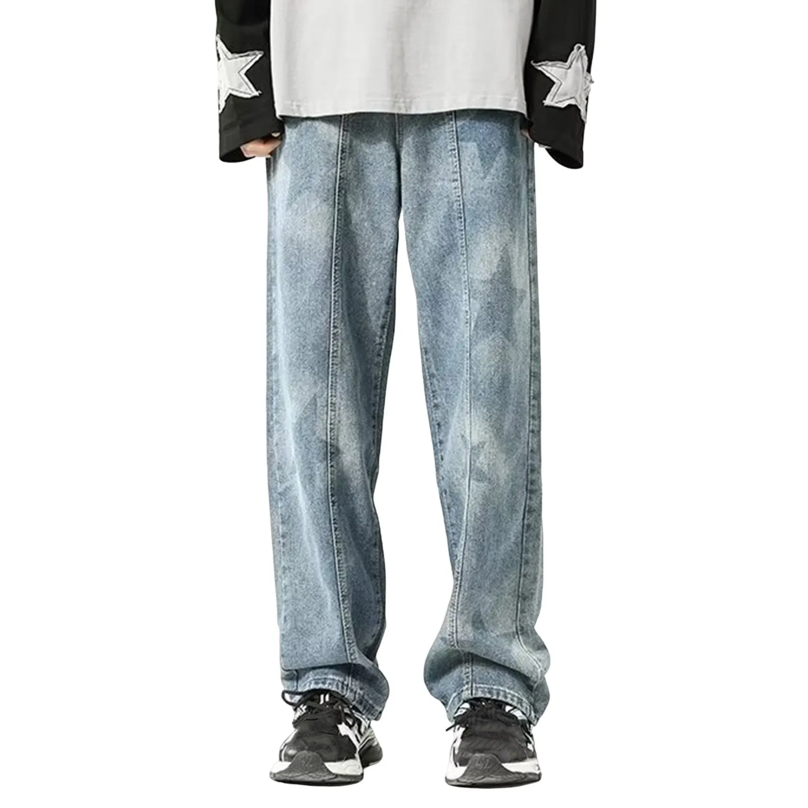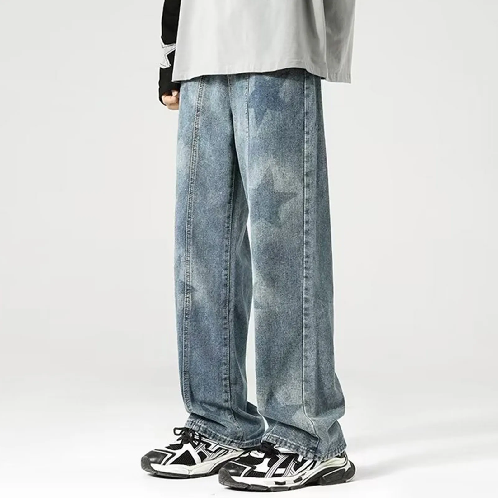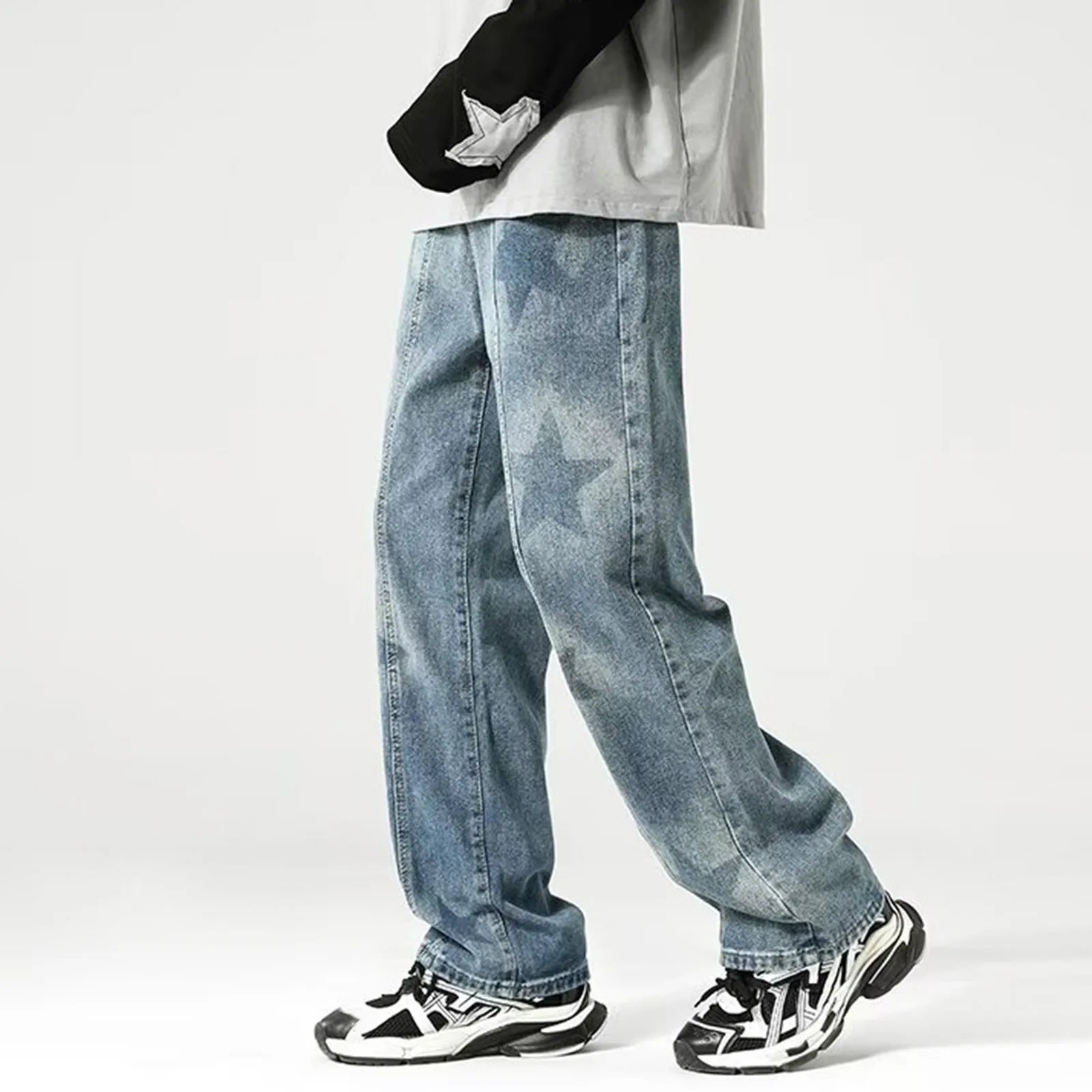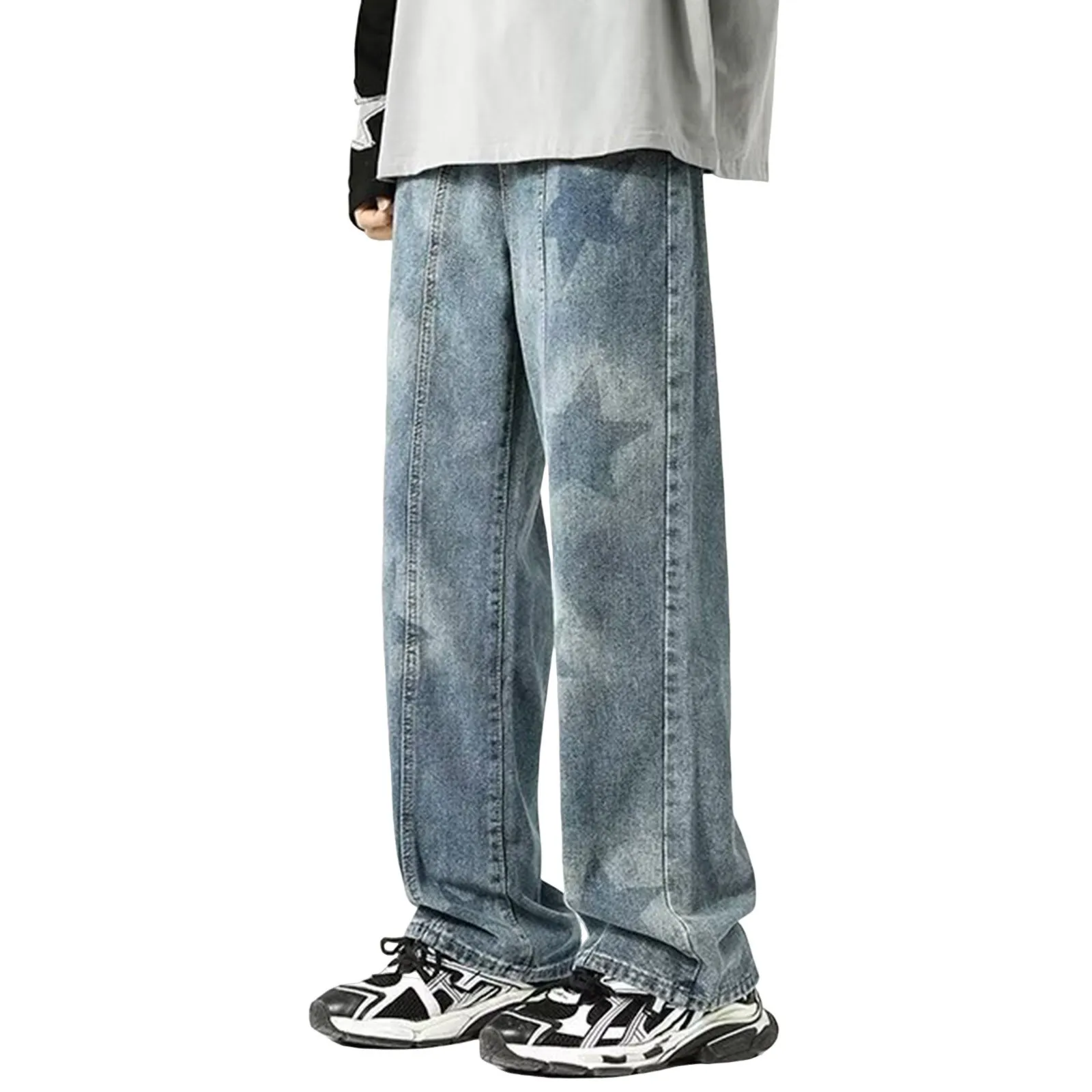 Mens Baggy Straight Jeans Casual Streetwear