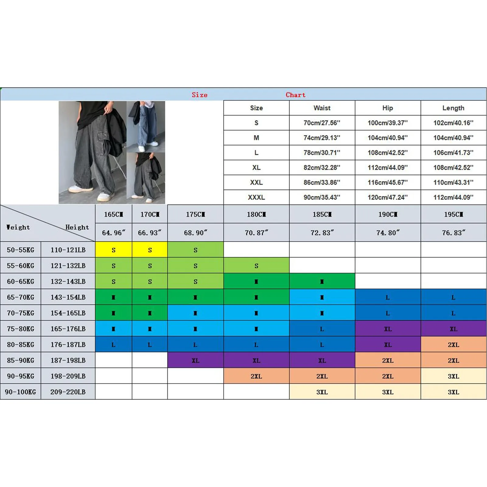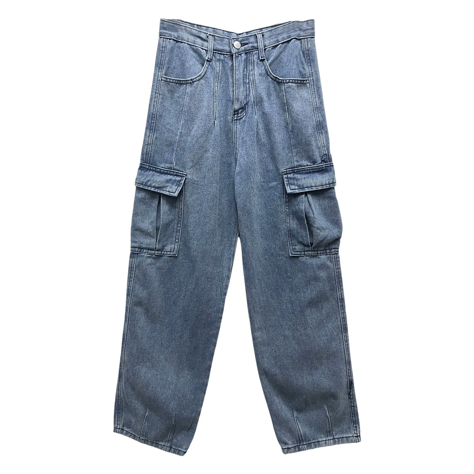 Mens Baggy Wide Leg Cargo Denim Pants Hip Hop