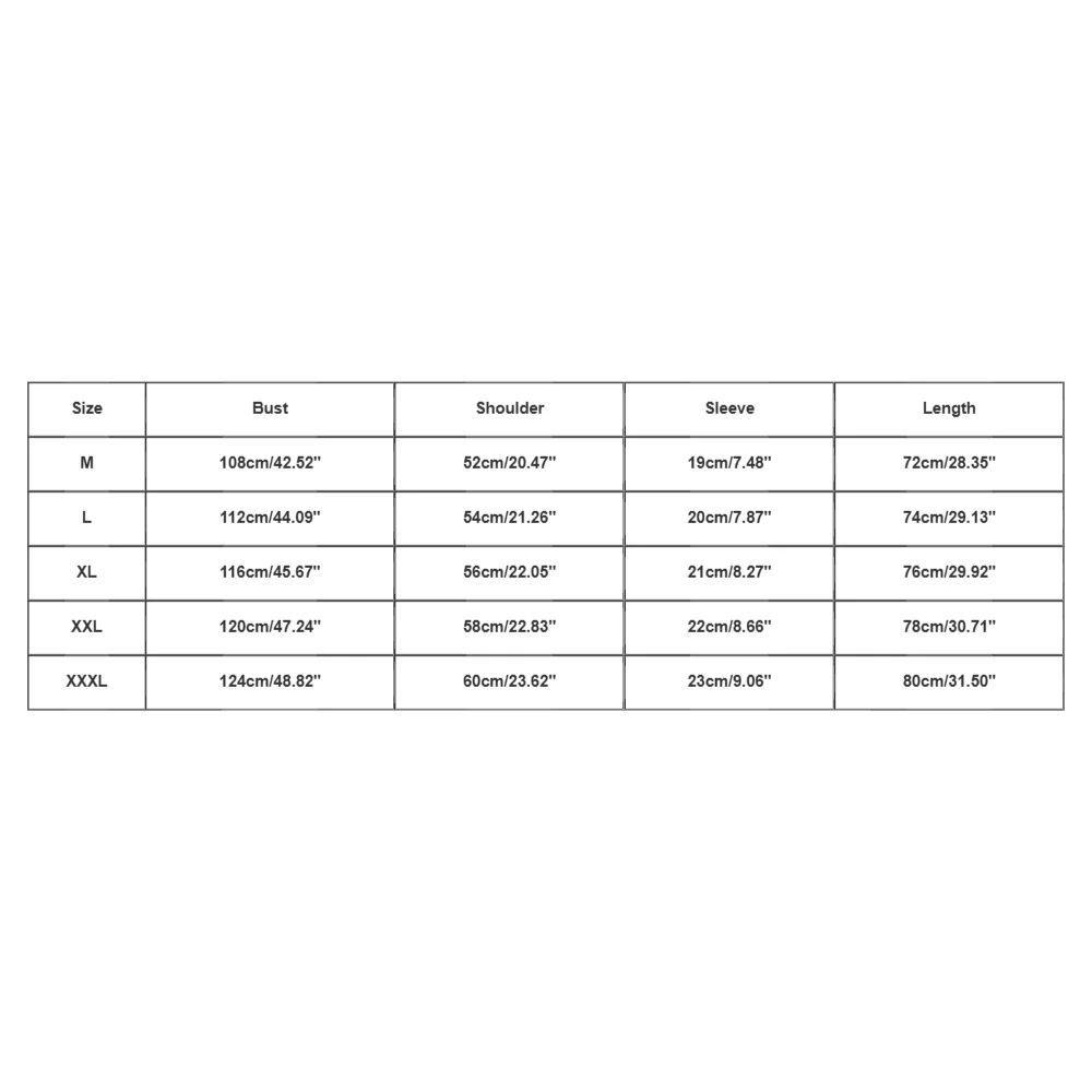Size: XXL – Bust: 120cm/47.24” – Shoulder: 58cm/22.83” – Sleeve: 22cm/8.66” – Length: 78cm/30.71”