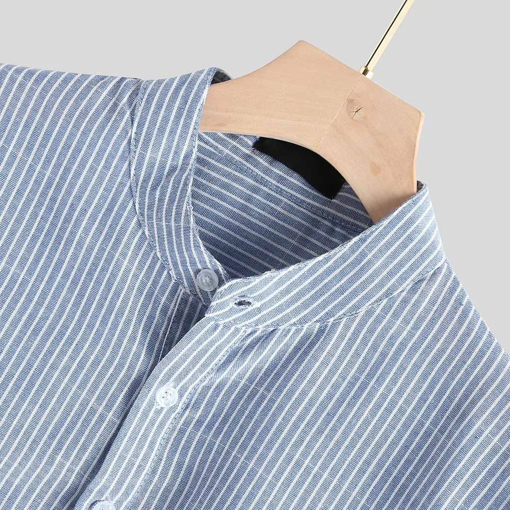 Mens Casual Stand Collar Long Sleeve Linen Shirt
