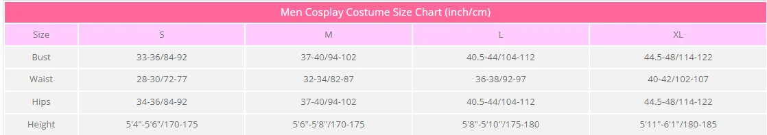 - Height: 5’4″-5’6″/165-170, 5’6″-5’8″/170-175, 5’8″-5’10″/175-180, 5’11”-6’1″/180-185