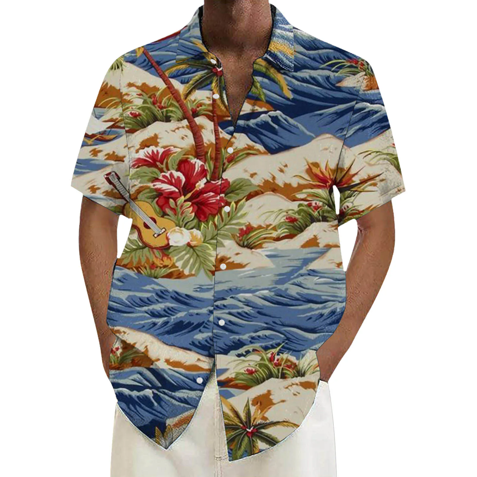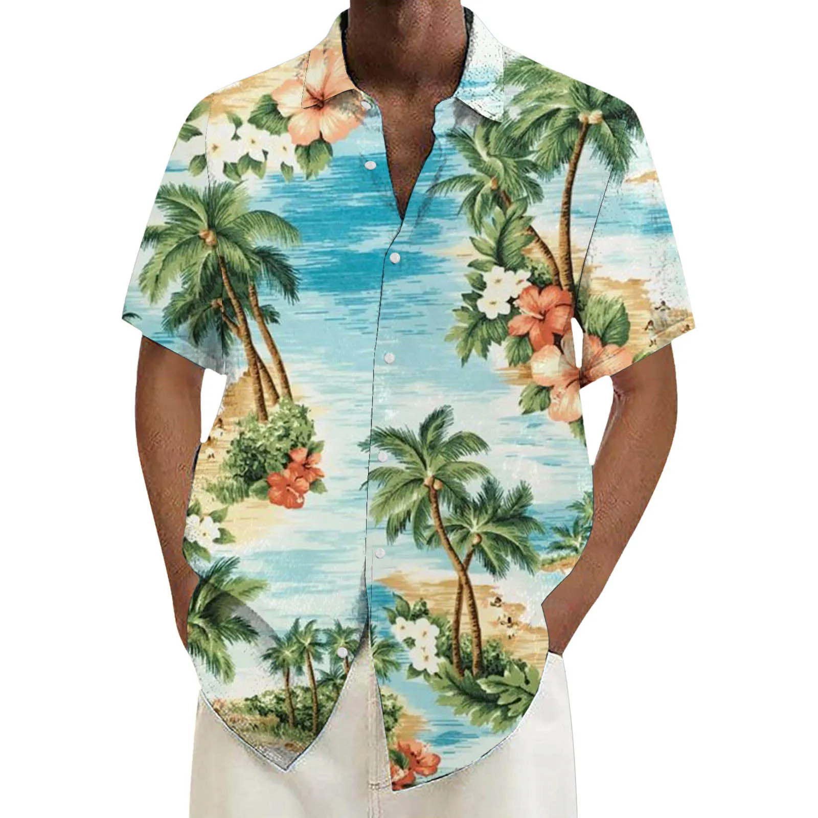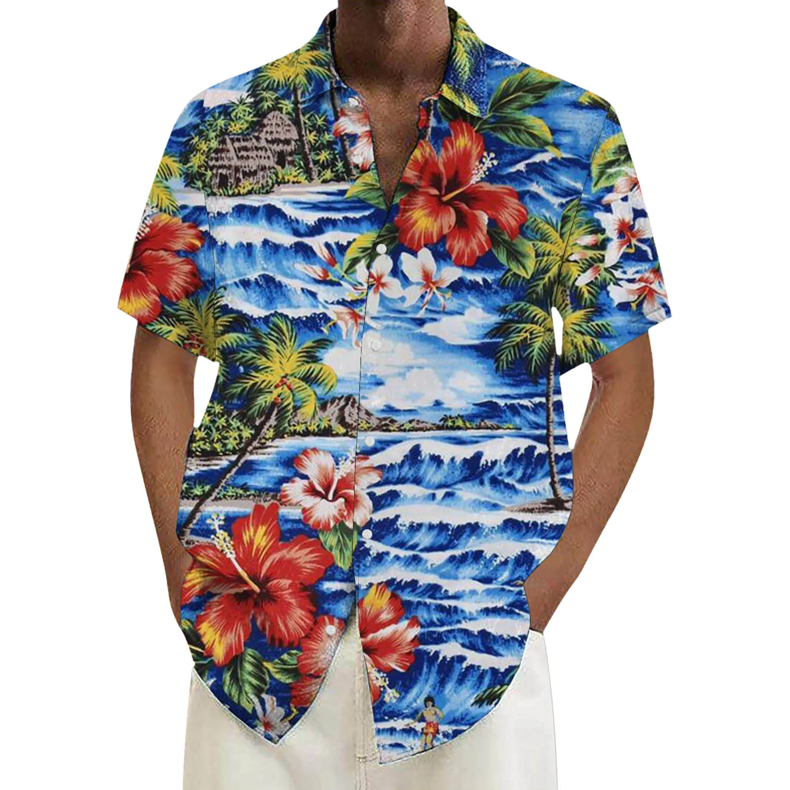 Mens Hawaii Flower Print Short Sleeve Shirt