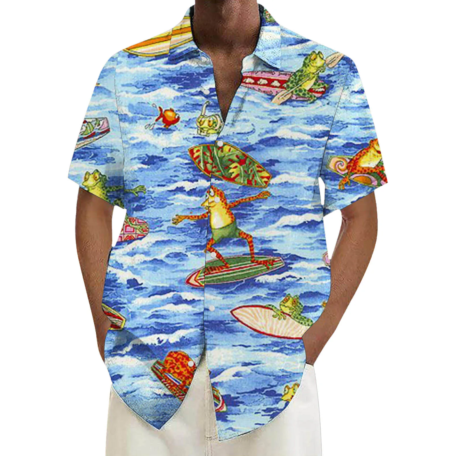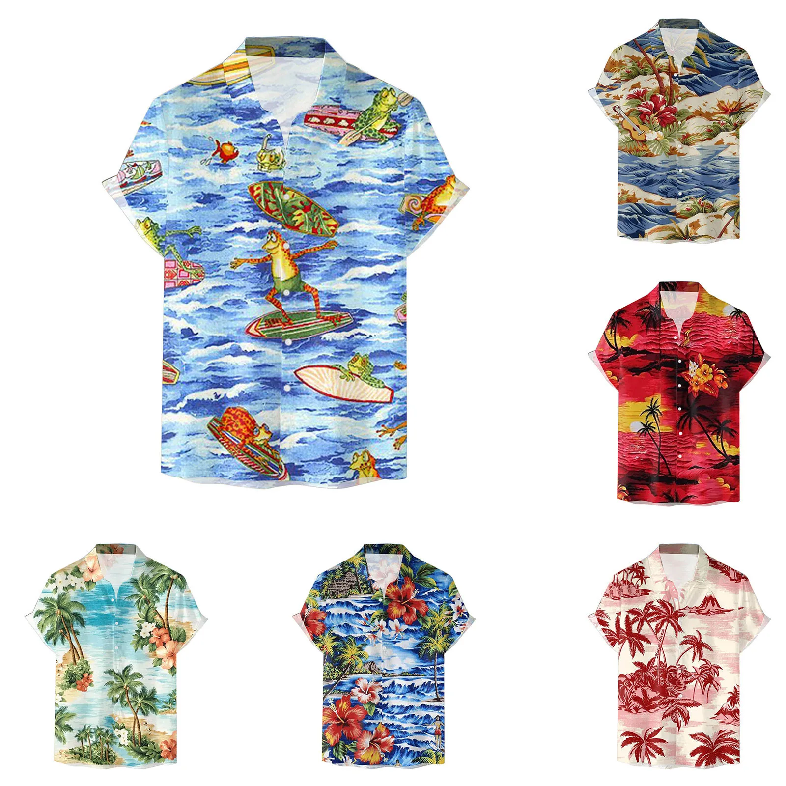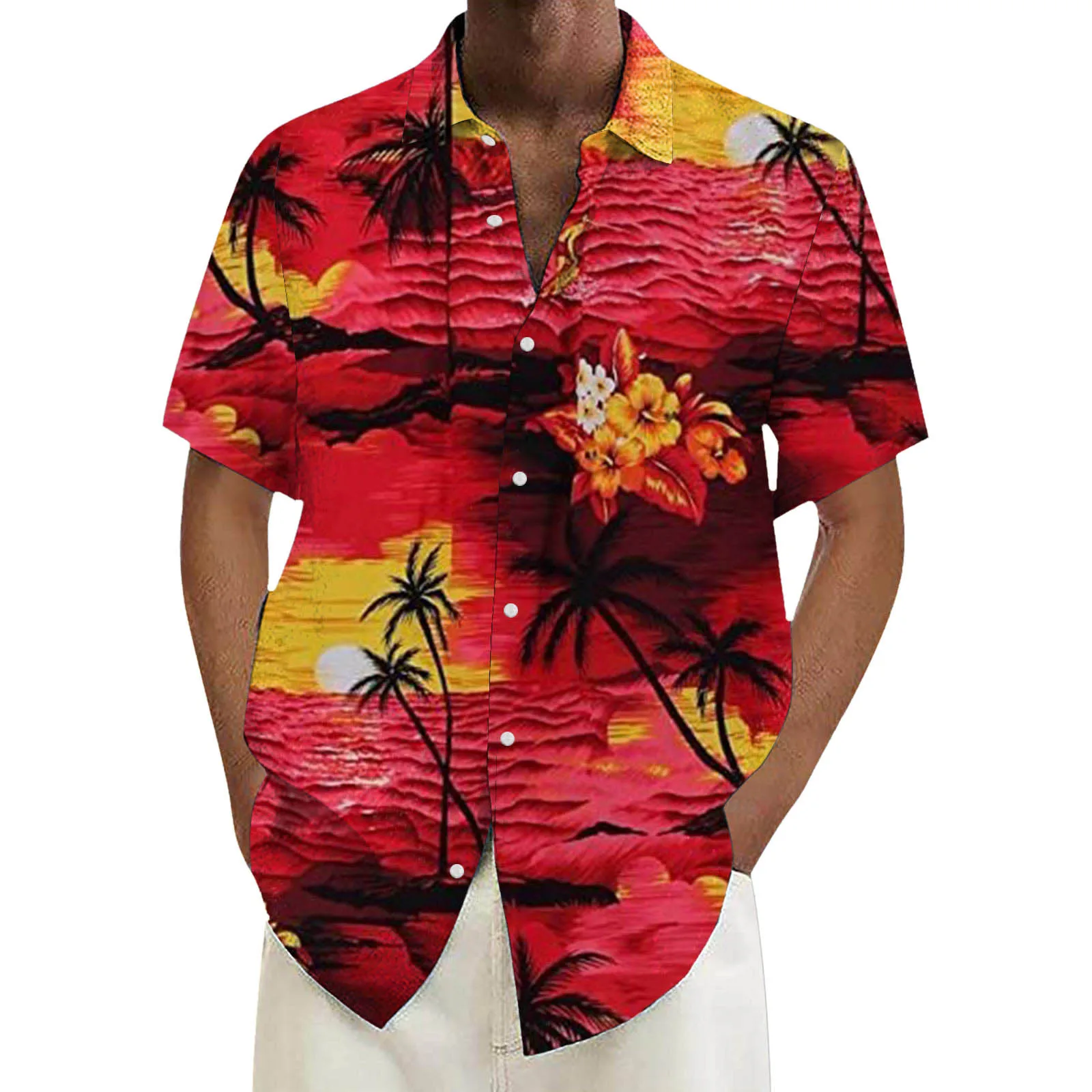 Mens Hawaii Flower Print Short Sleeve Shirt