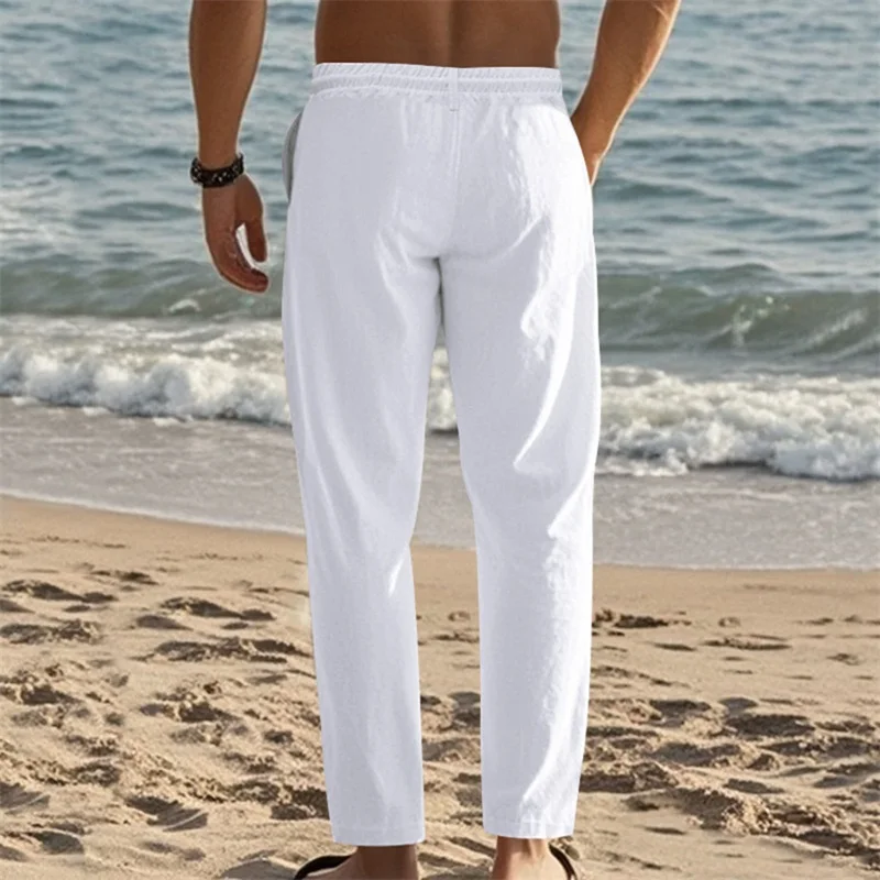 Mens Lightweight Linen Beach Pants with Pockets