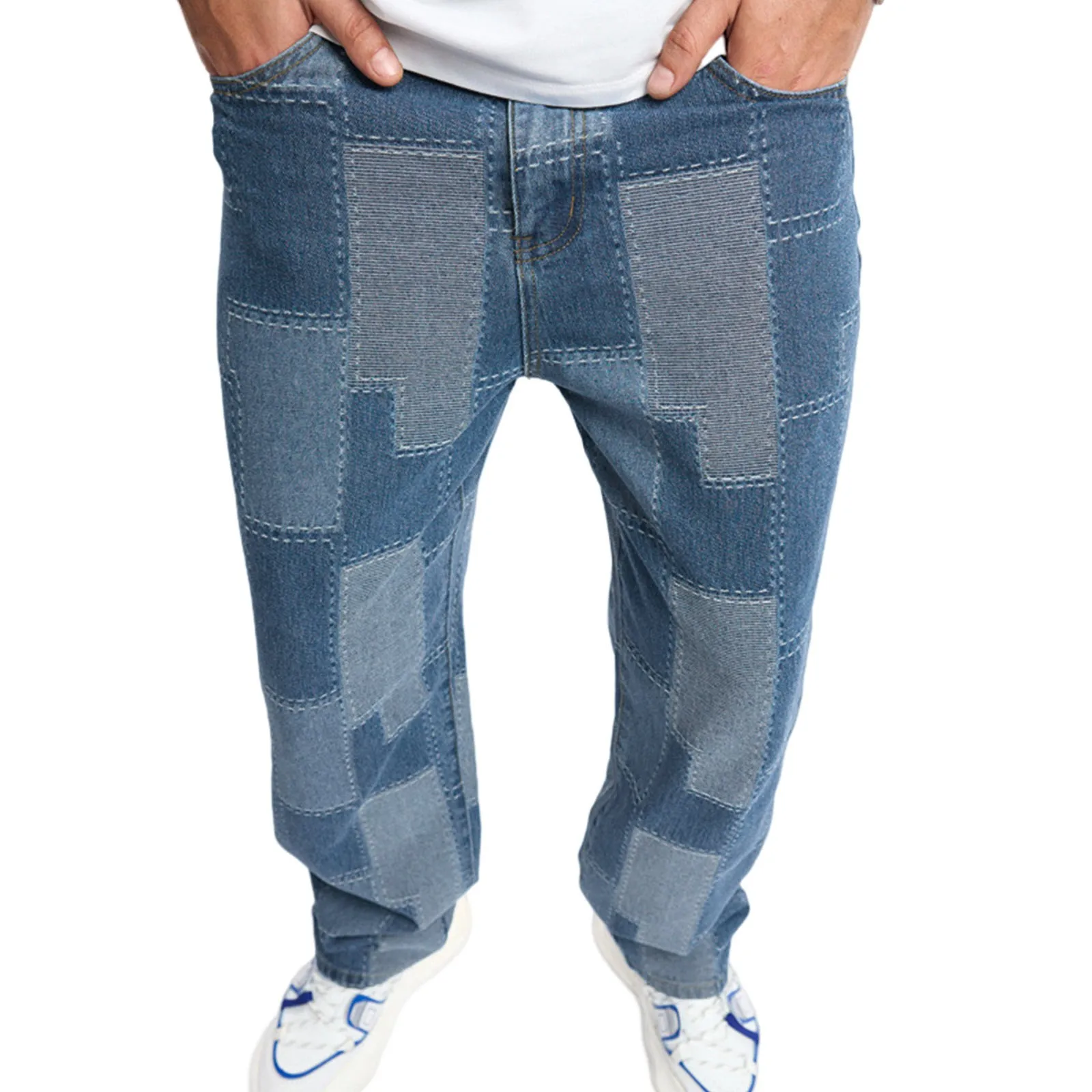 Mens Stylish Patch Baggy Hip Hop Denim Pants