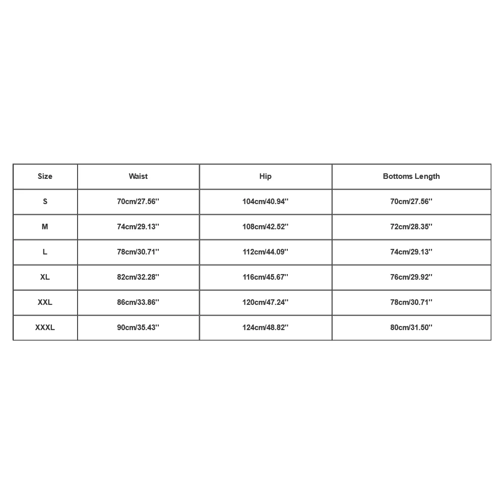 - Size: XXXL, Waist: 90cm/35.43”, Hip: 124cm/48.82”, Bottoms Length: 80cm/31.50”