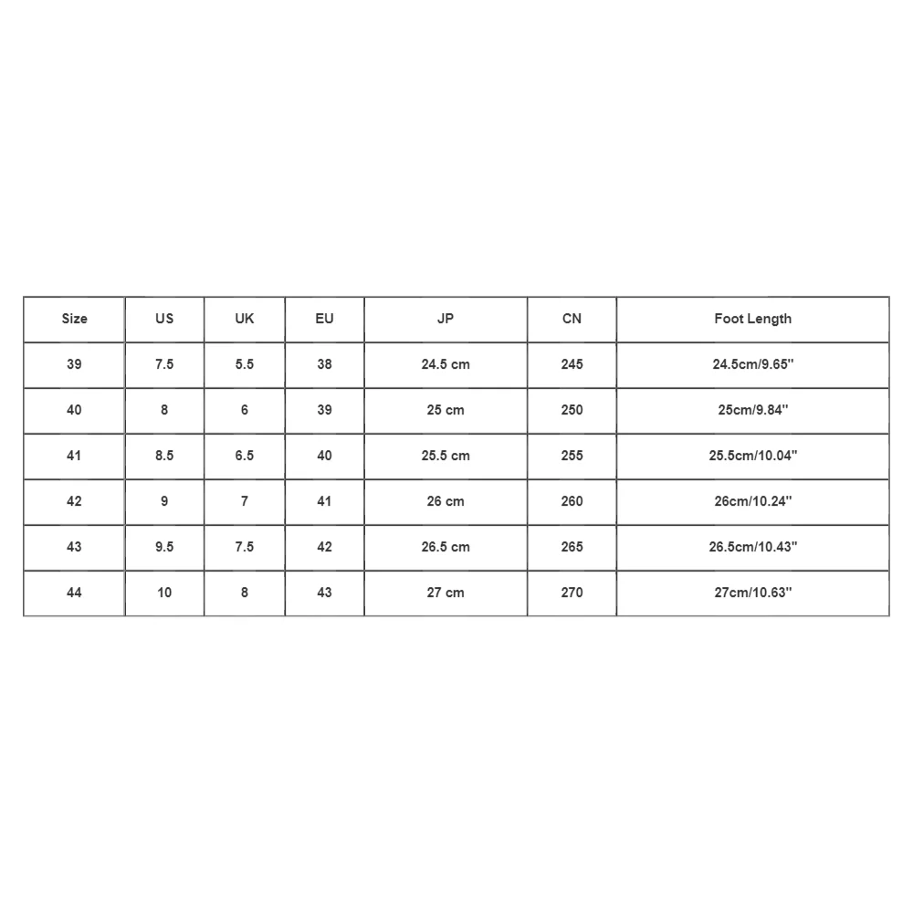 - Size Note: The size indicated on the shoes is in Chinese sizing. It is recommended to select the appropriate size based on your foot length.