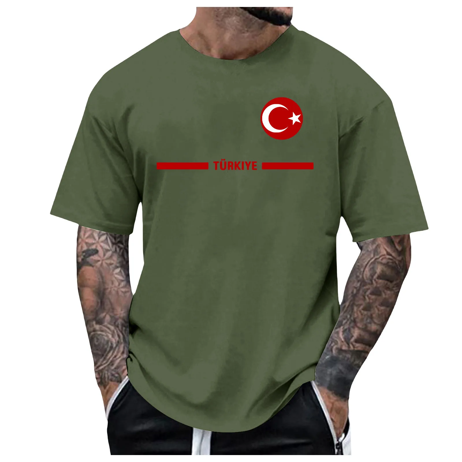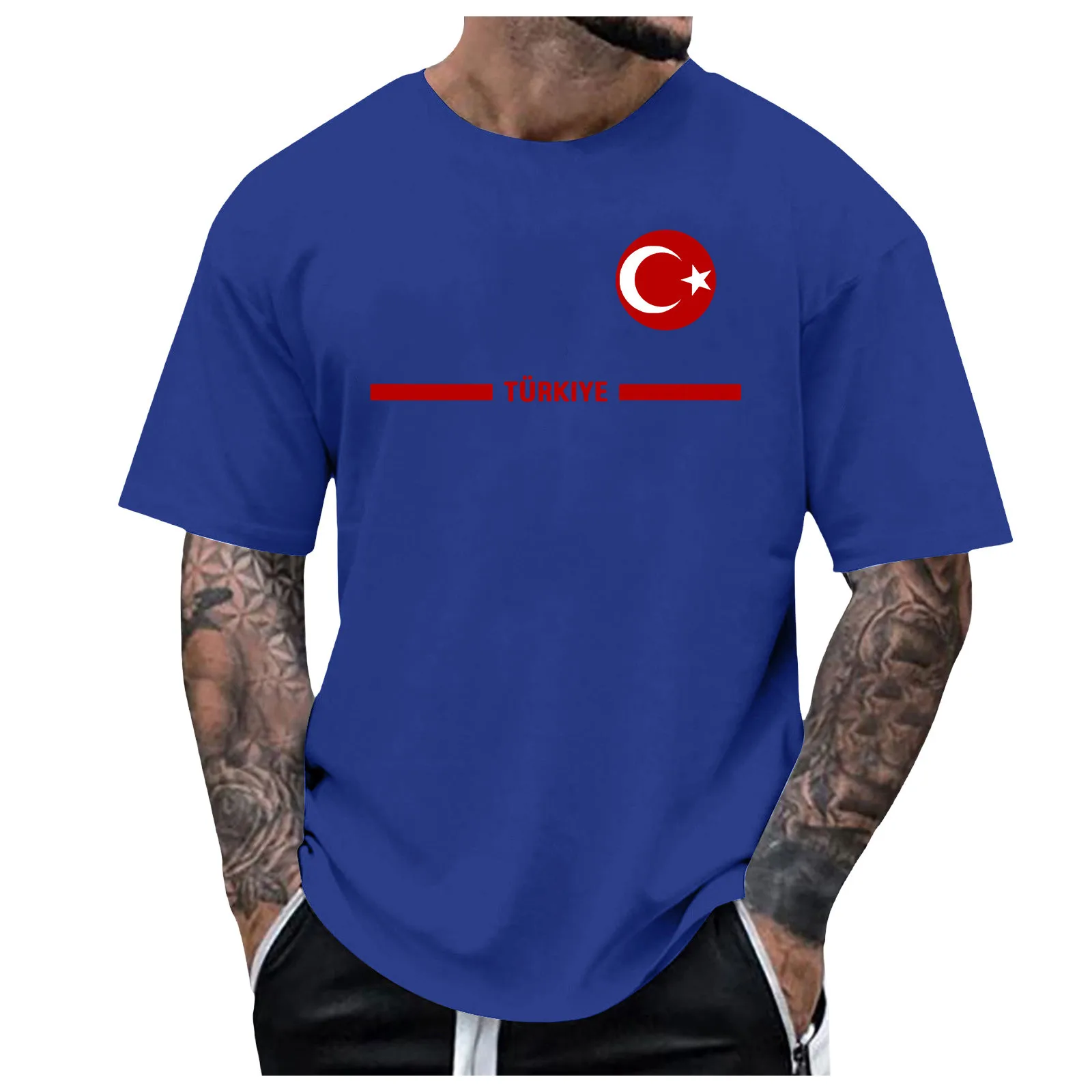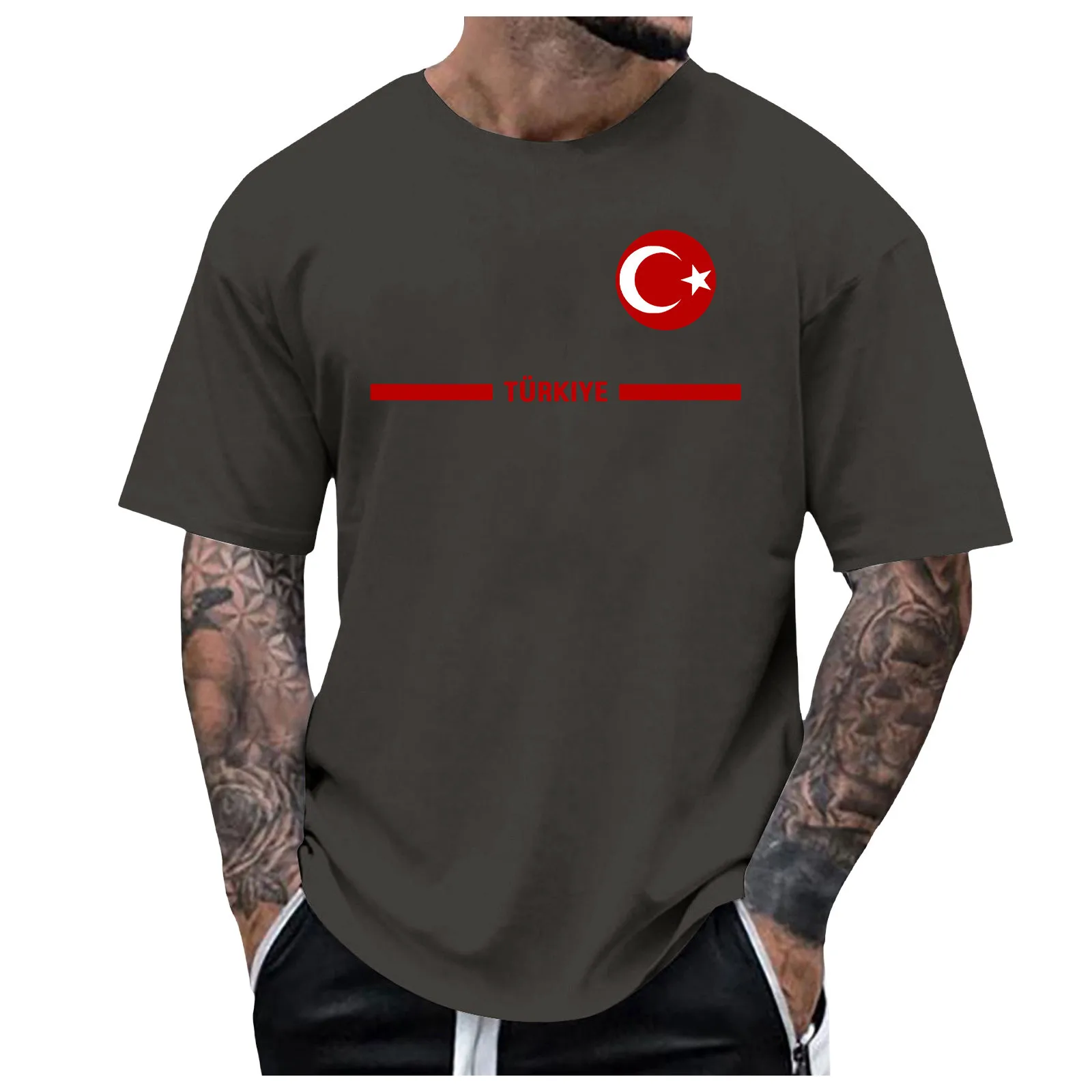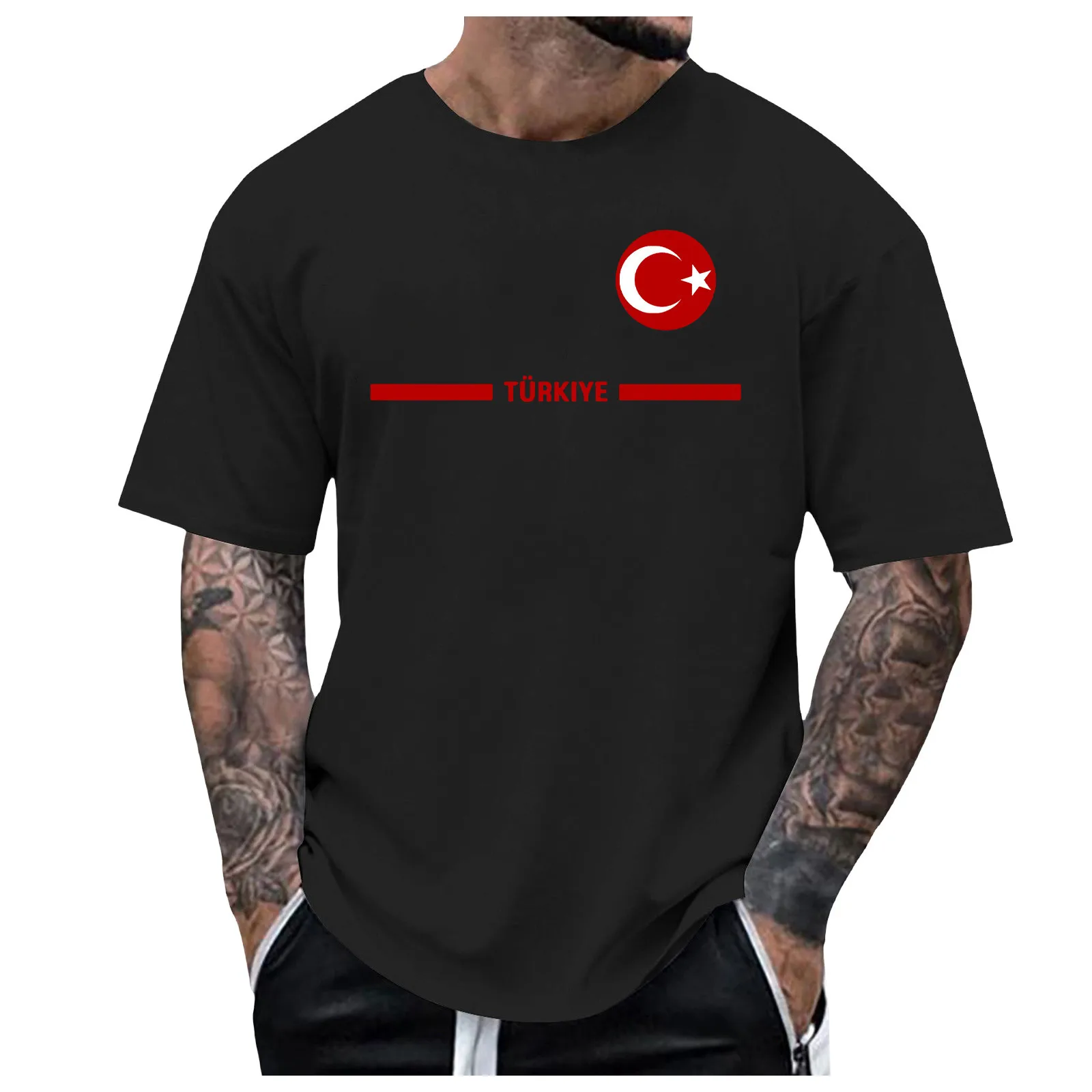 Mens Turkish Flag Print Tee Shirt Summer Casual
