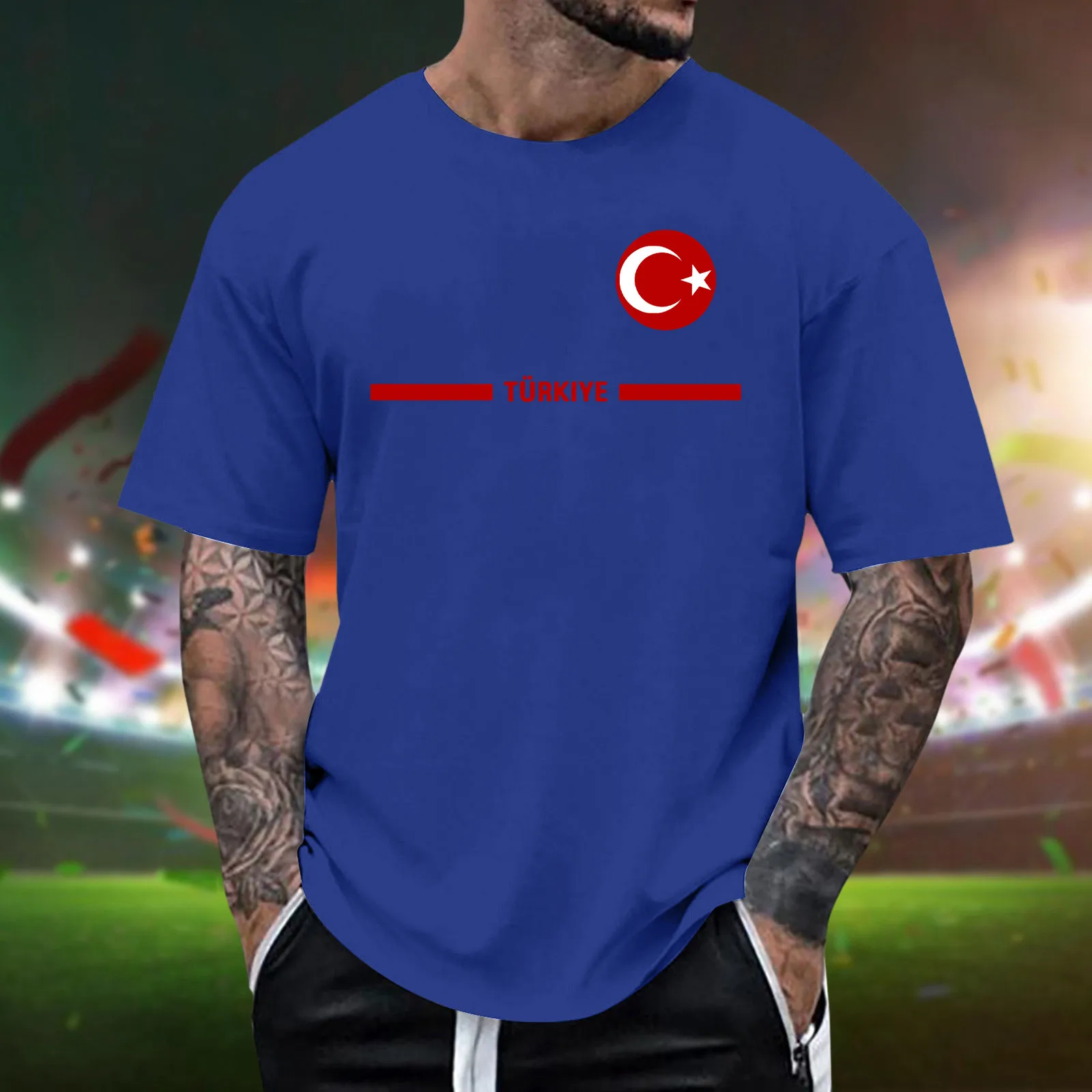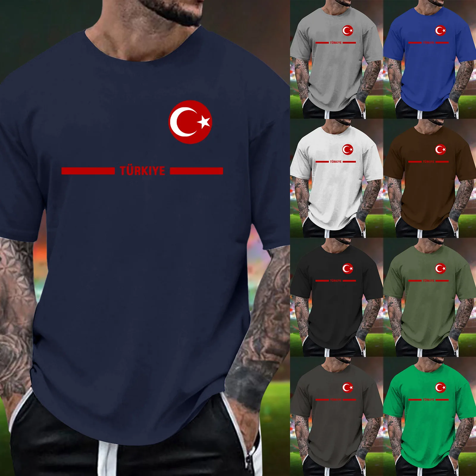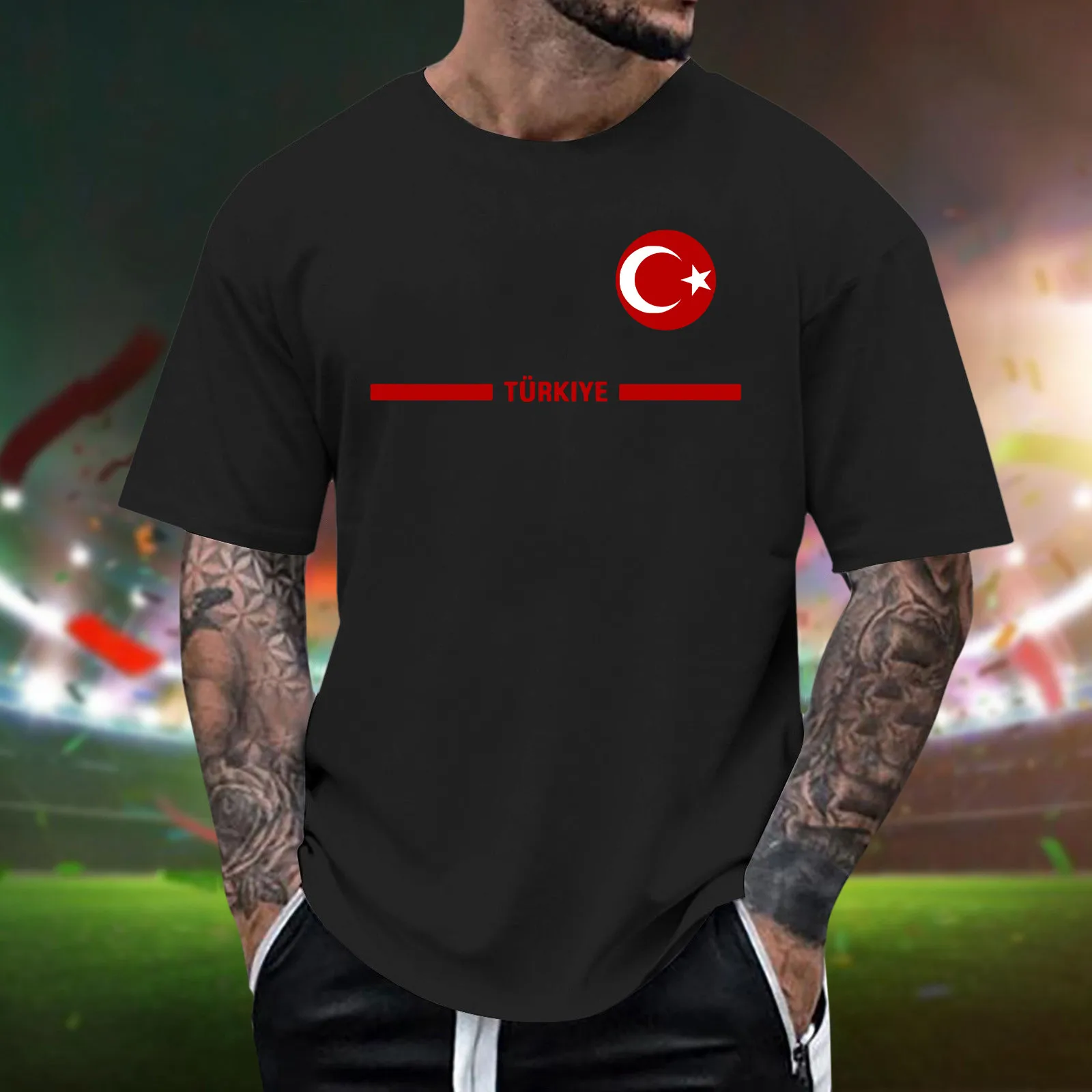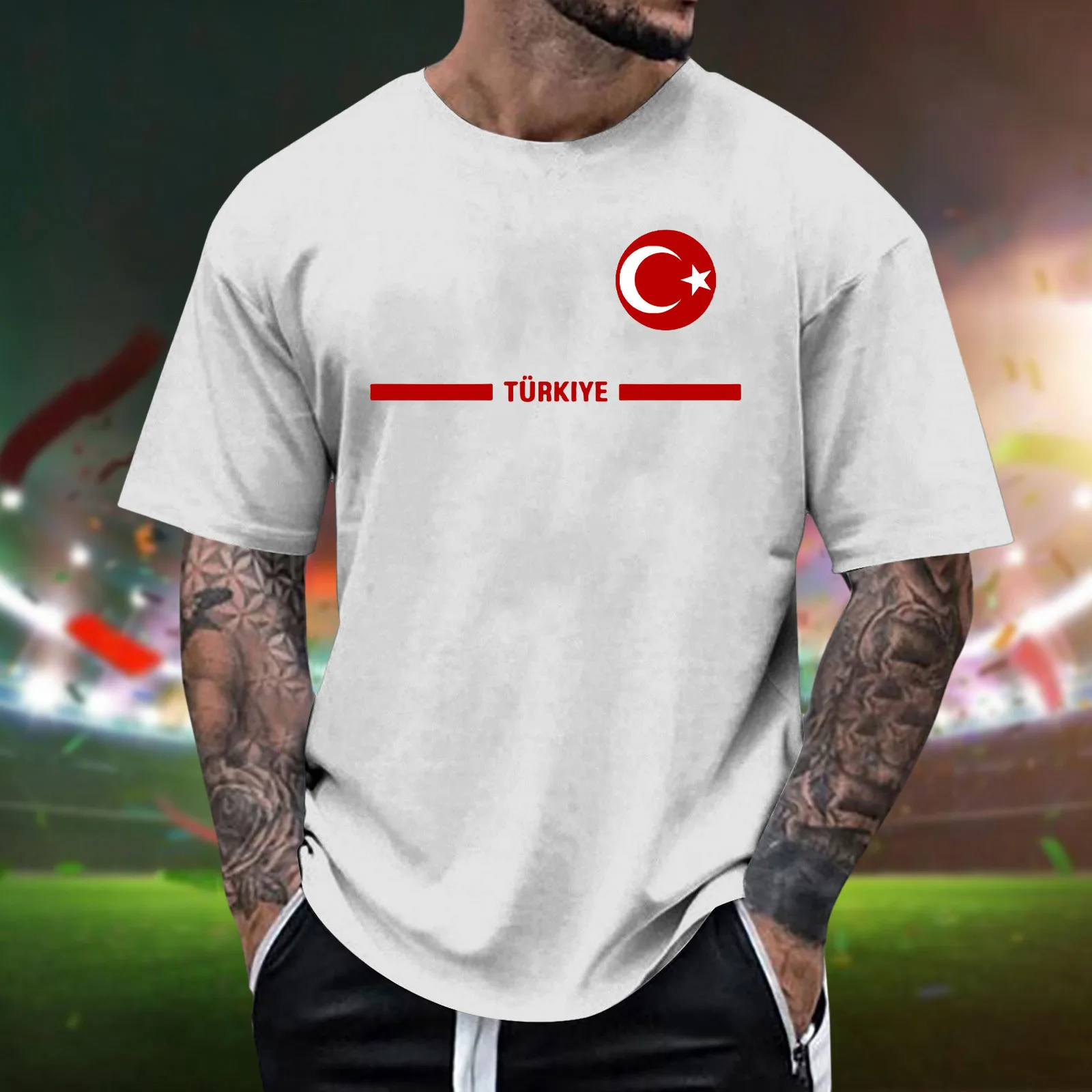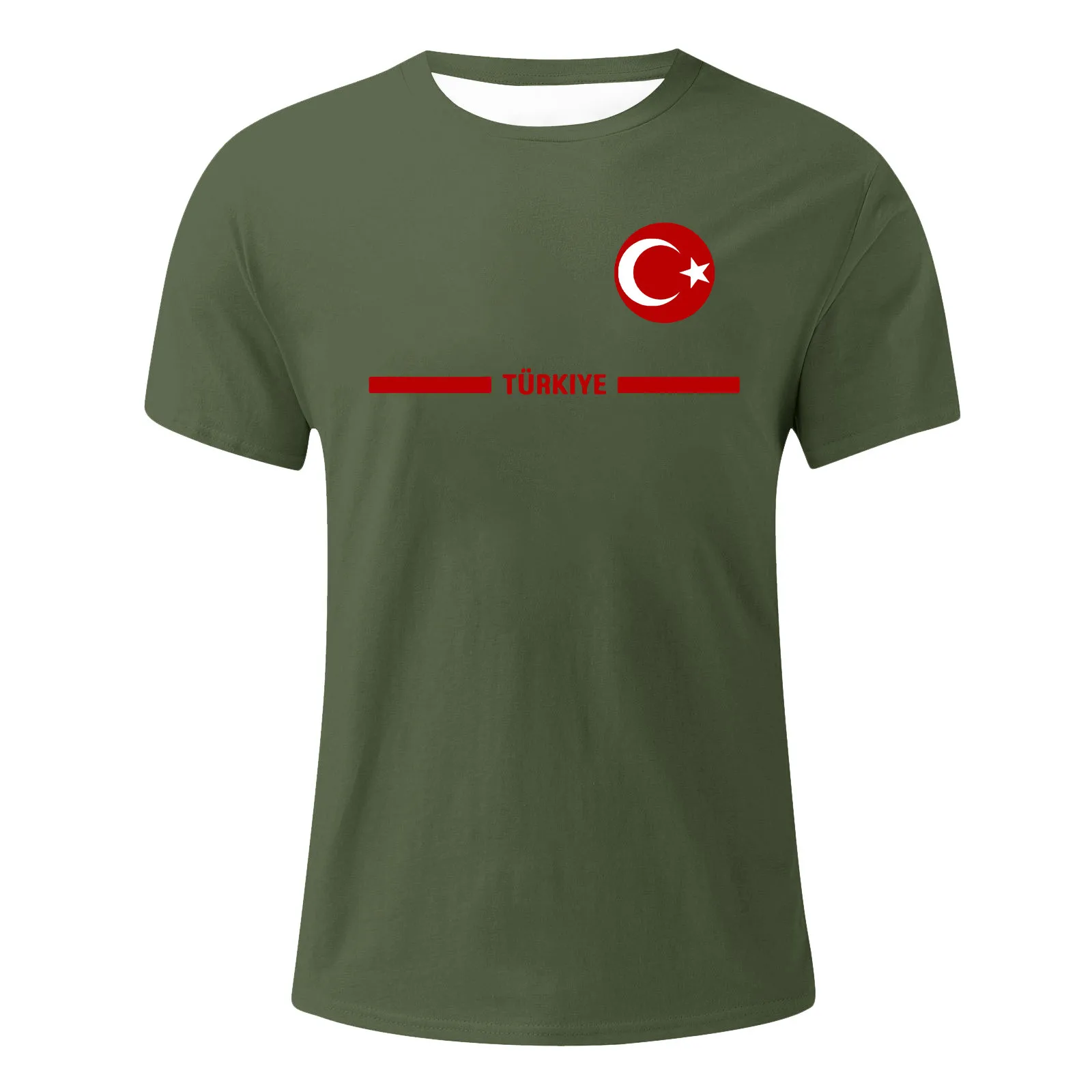 Mens Turkish Flag Print Tee Shirt Summer Casual