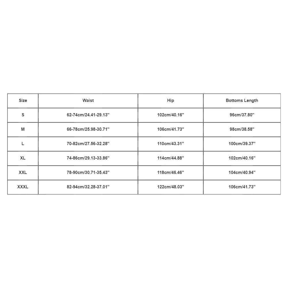 Size: XXXL, waist: 82-94cm/32.28-37.01”, Hip: 122cm/48.03”, Bottoms Length: 106cm/41.73”