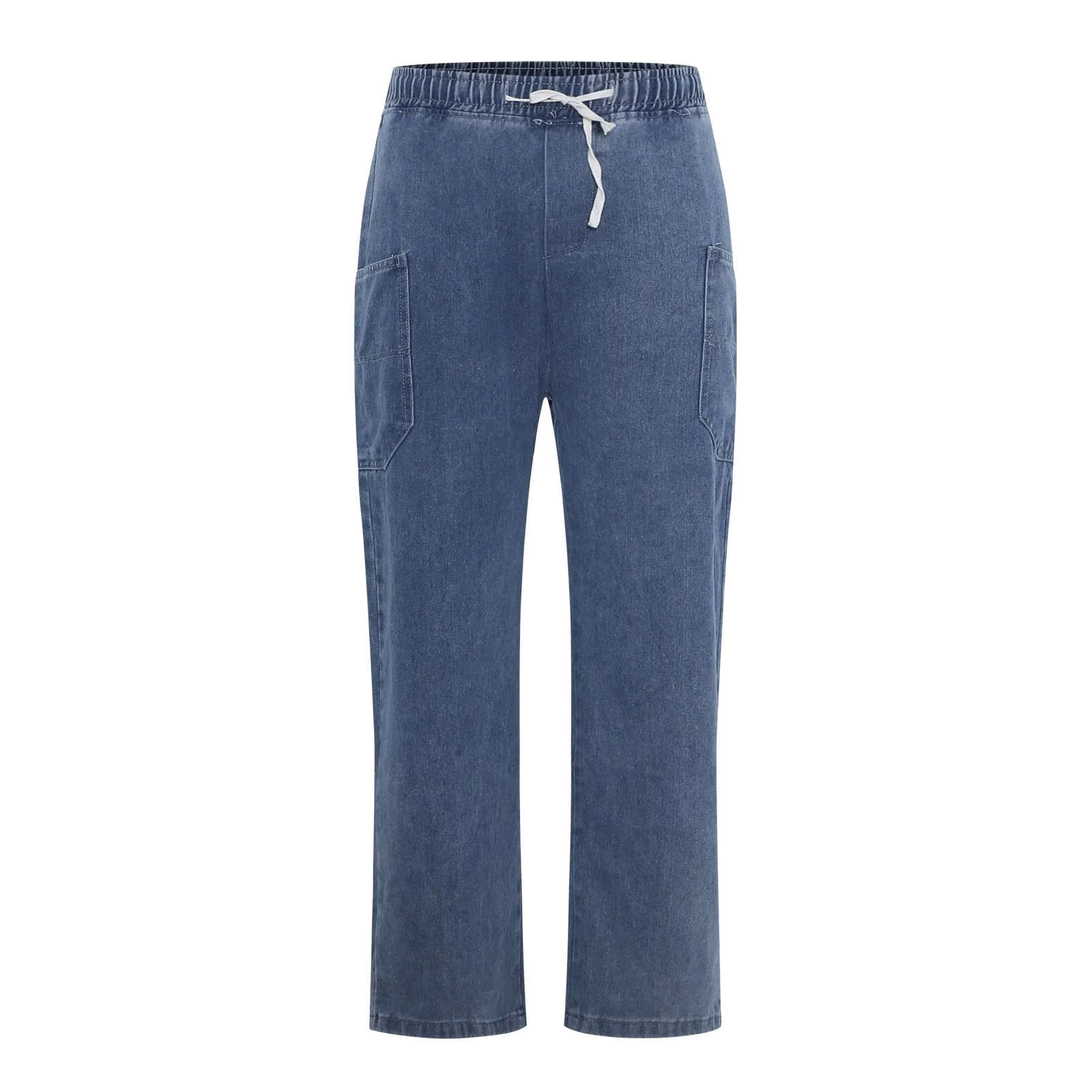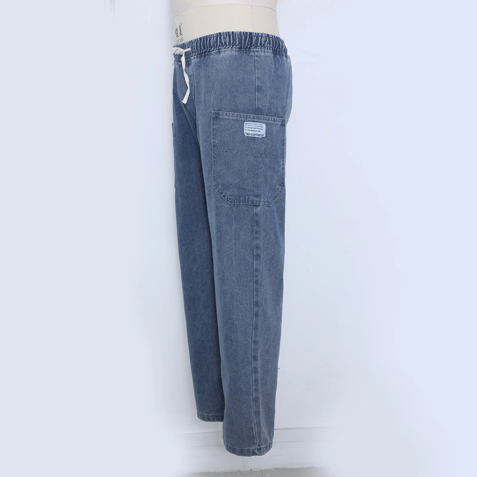 These jeans allow you to move freely without stress! With a stylish adjustable drawstring waist! Easy to wear, looks great, and is perfect for adult casual. Pockets on both sides of your smartphone for easy access!