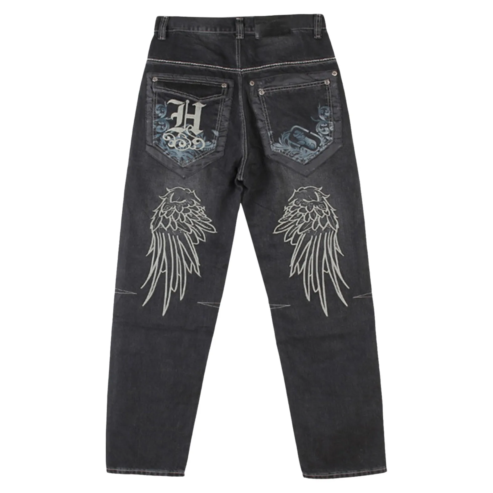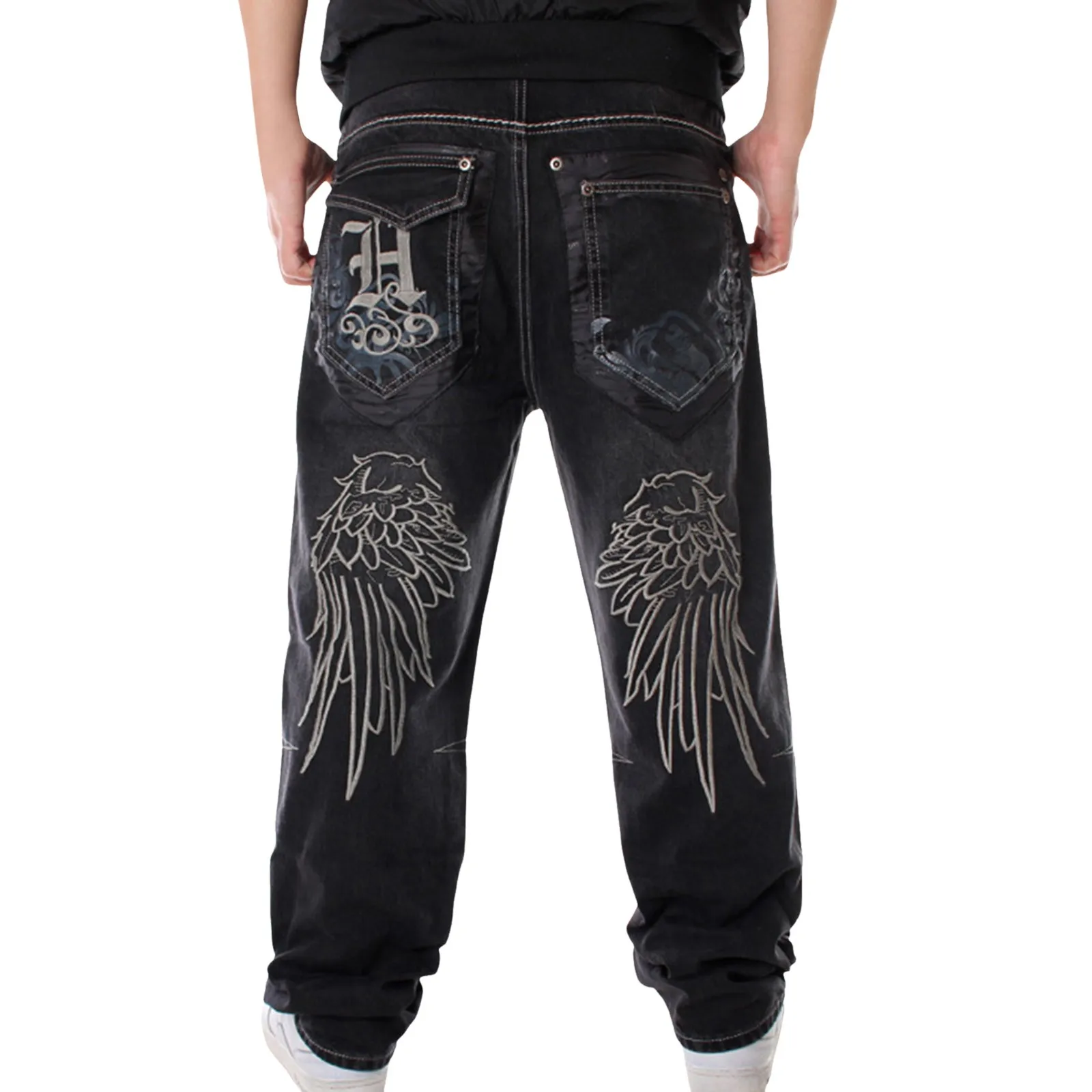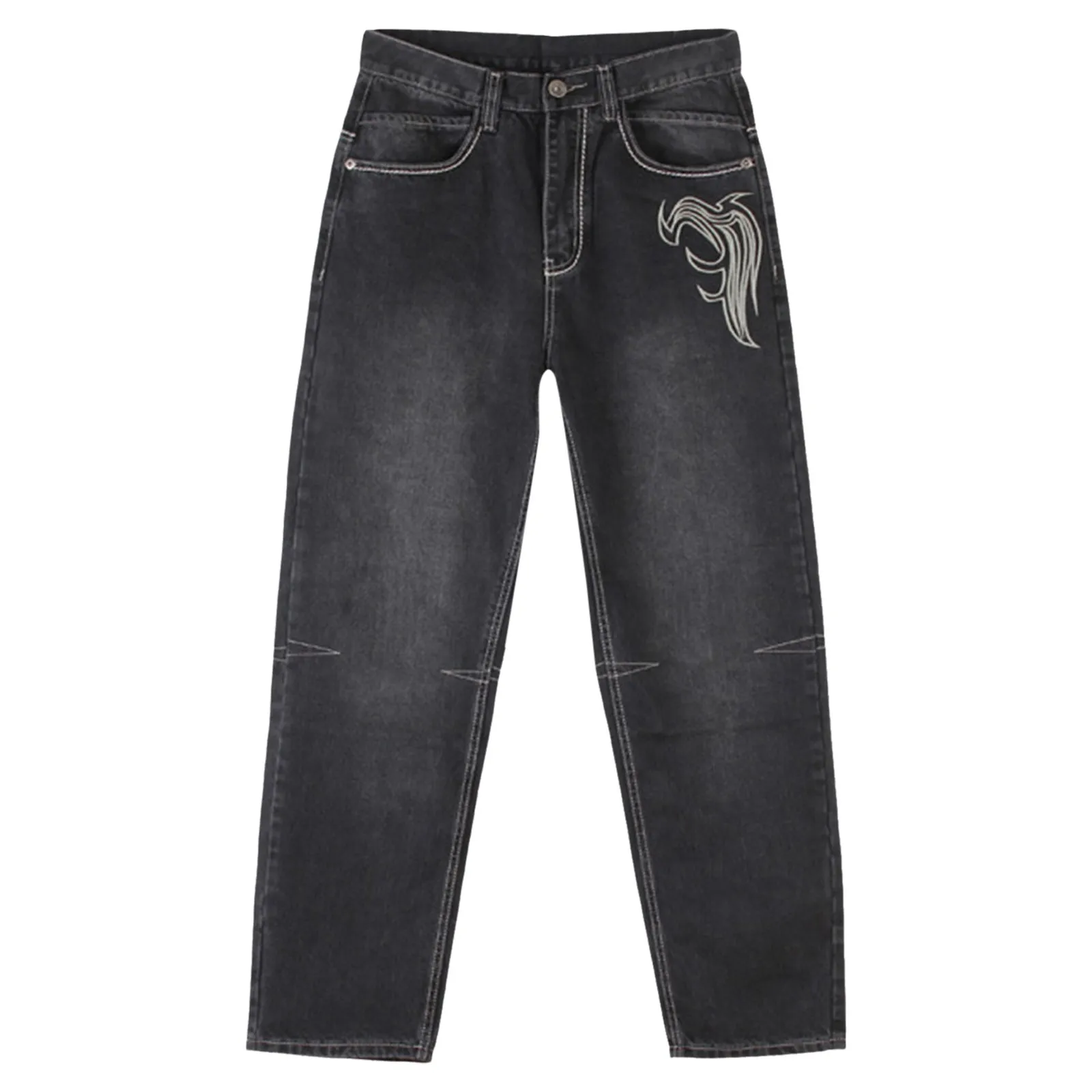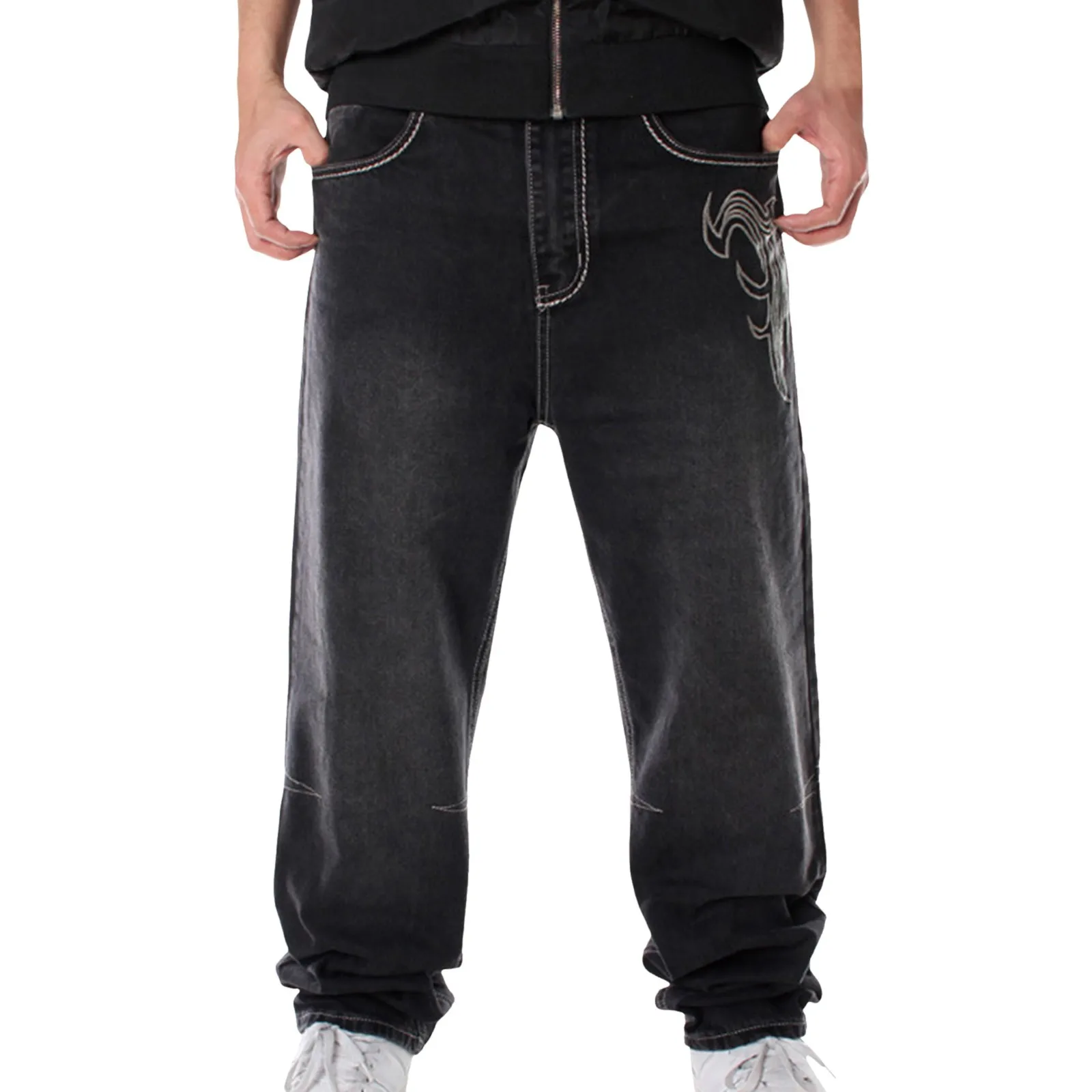 Mens Wide Leg Hip-hop Skateboard Denim Pants