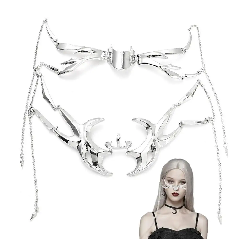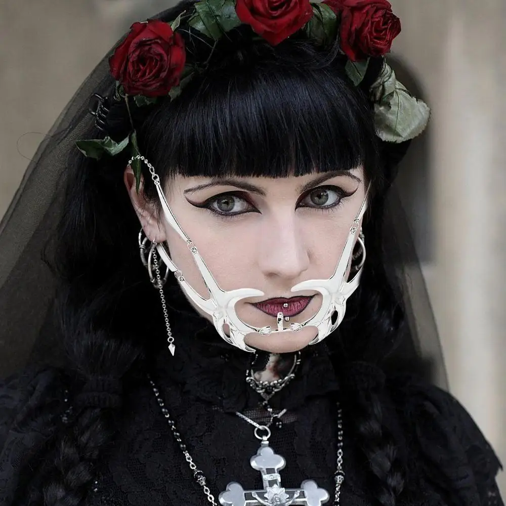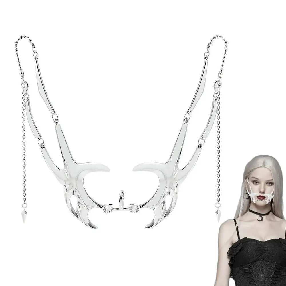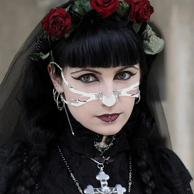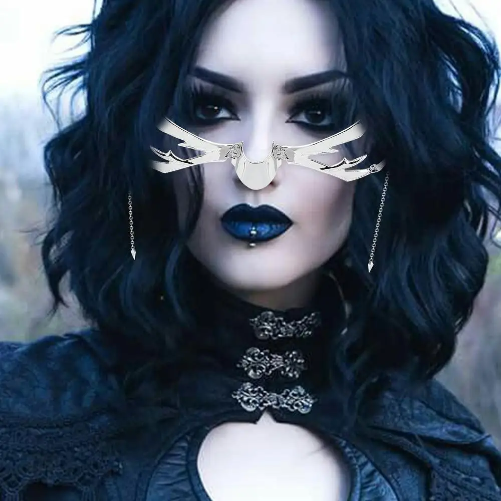 - Multiple Collocations: Steampunk Face Cover Silver is great for any gender and occasion. This silver face jewelry irregular mask is available in various styles of face chains and lip accessories.