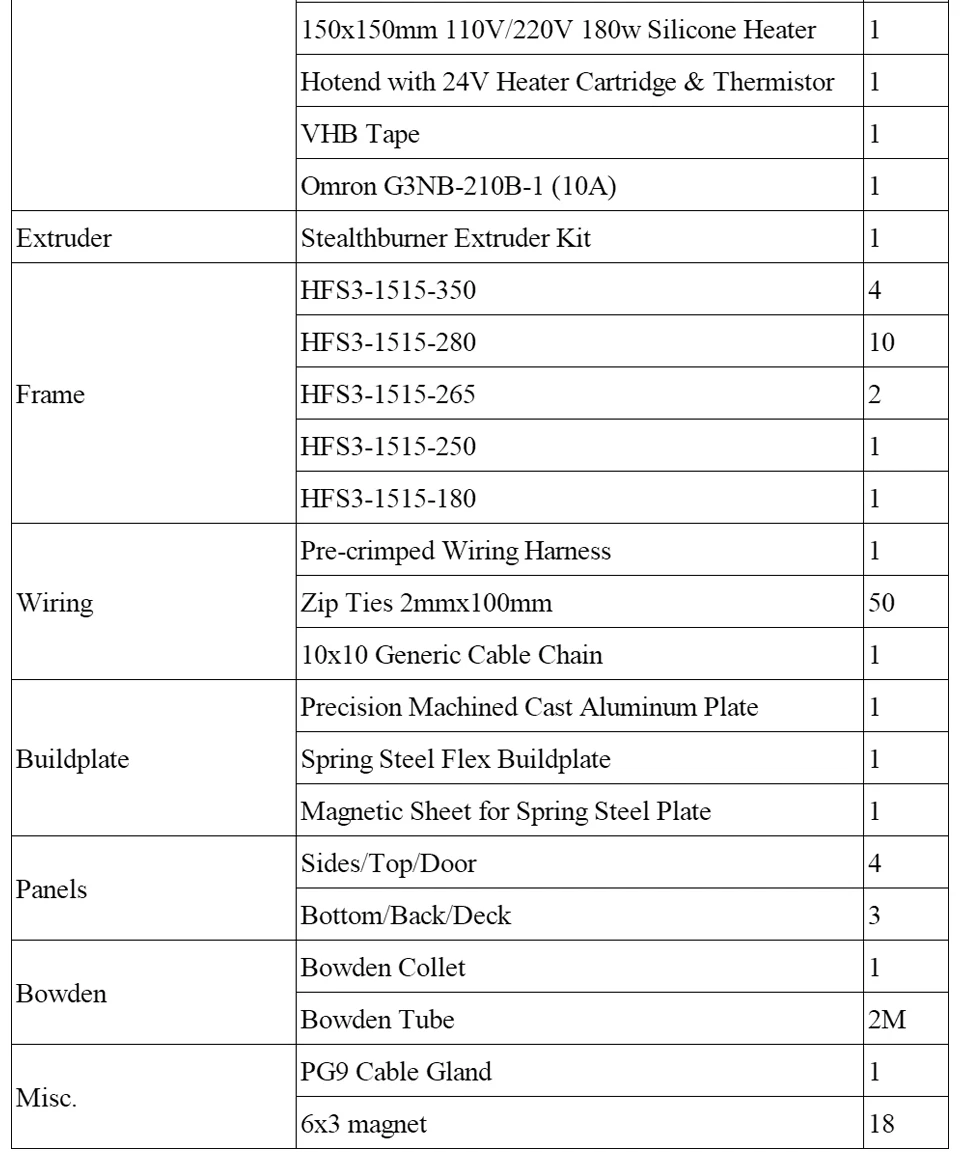This kit does not include any 3D printed parts. We have collected high-quality components for the Micron+ CoreXY 3D printer, so you don’t need to purchase anything from different stores. This will save you search time and the cost of shipping parts separately.