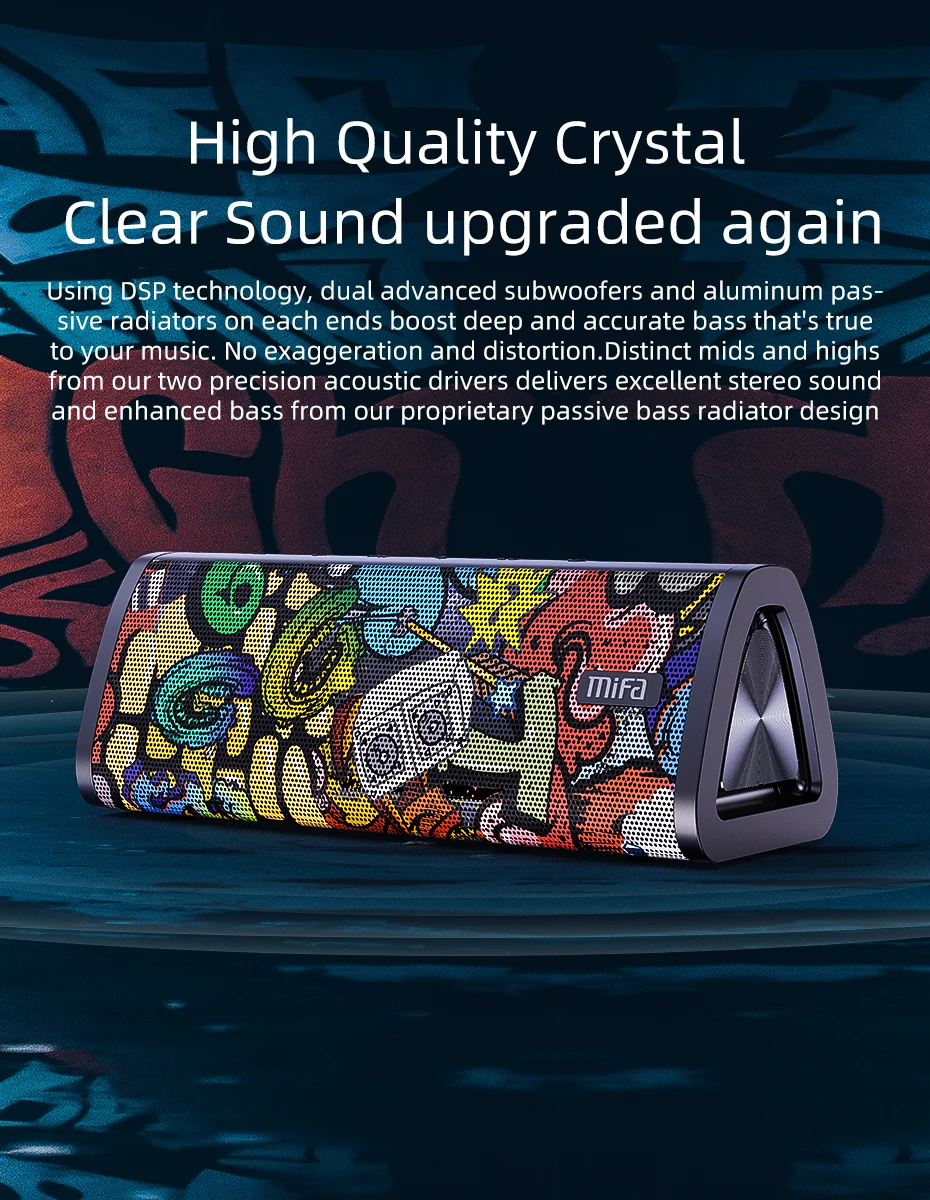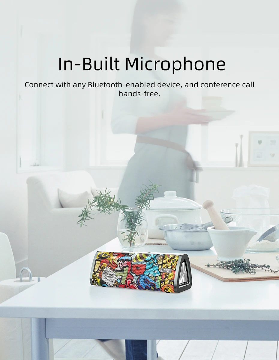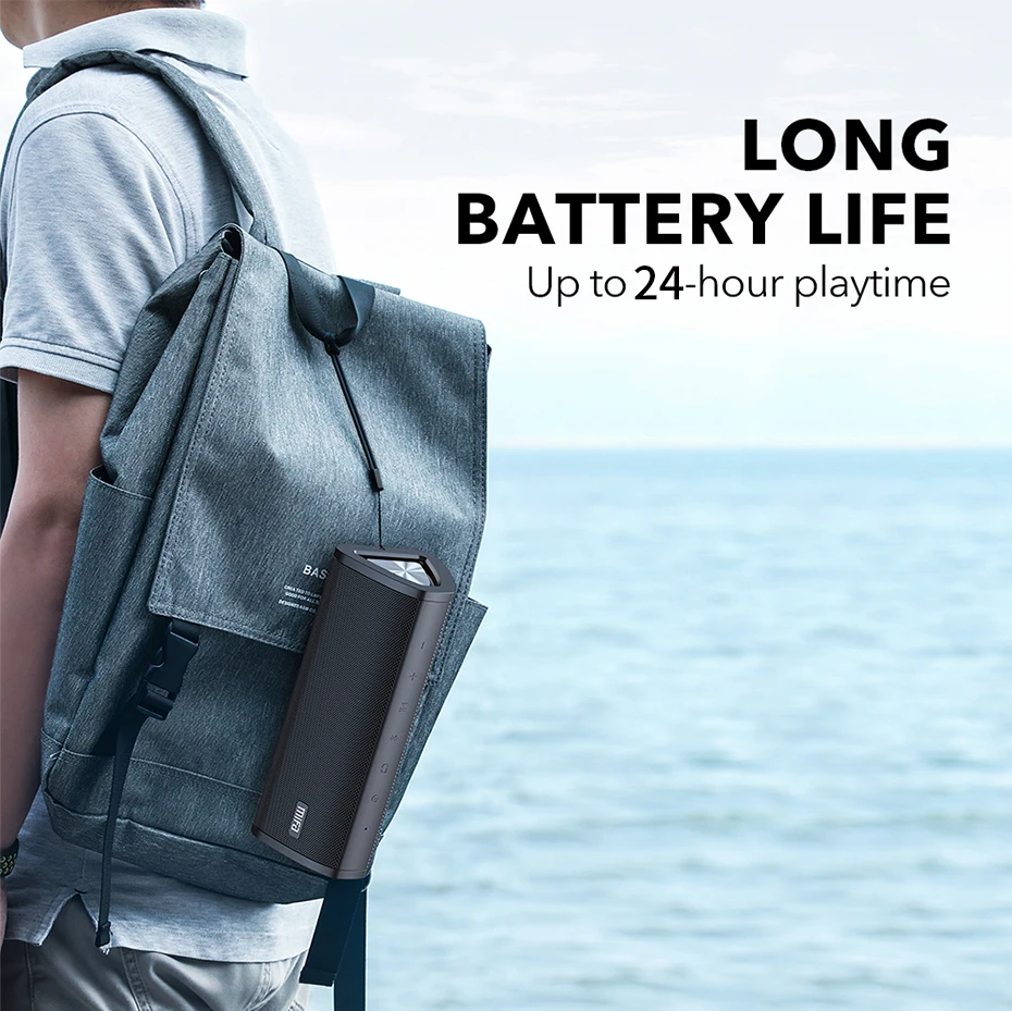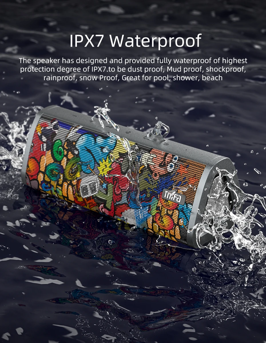 The speaker is designed to be fully waterproof with the highest protection degree of IPX7, making it dustproof, mudproof, shockproof, rainproof, and snowproof. Great for the pool, shower, or beach.