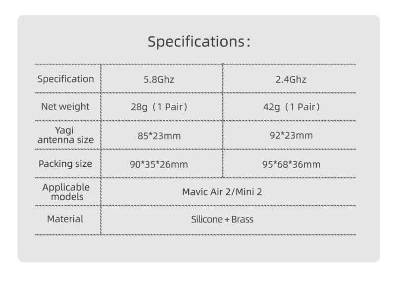 - This product is the Sunnylife Yagi Antenna Signal Booster, compatible with 5.8/2.4Ghz frequencies, and designed for Mavic Air 2 and Mini 2 drones.