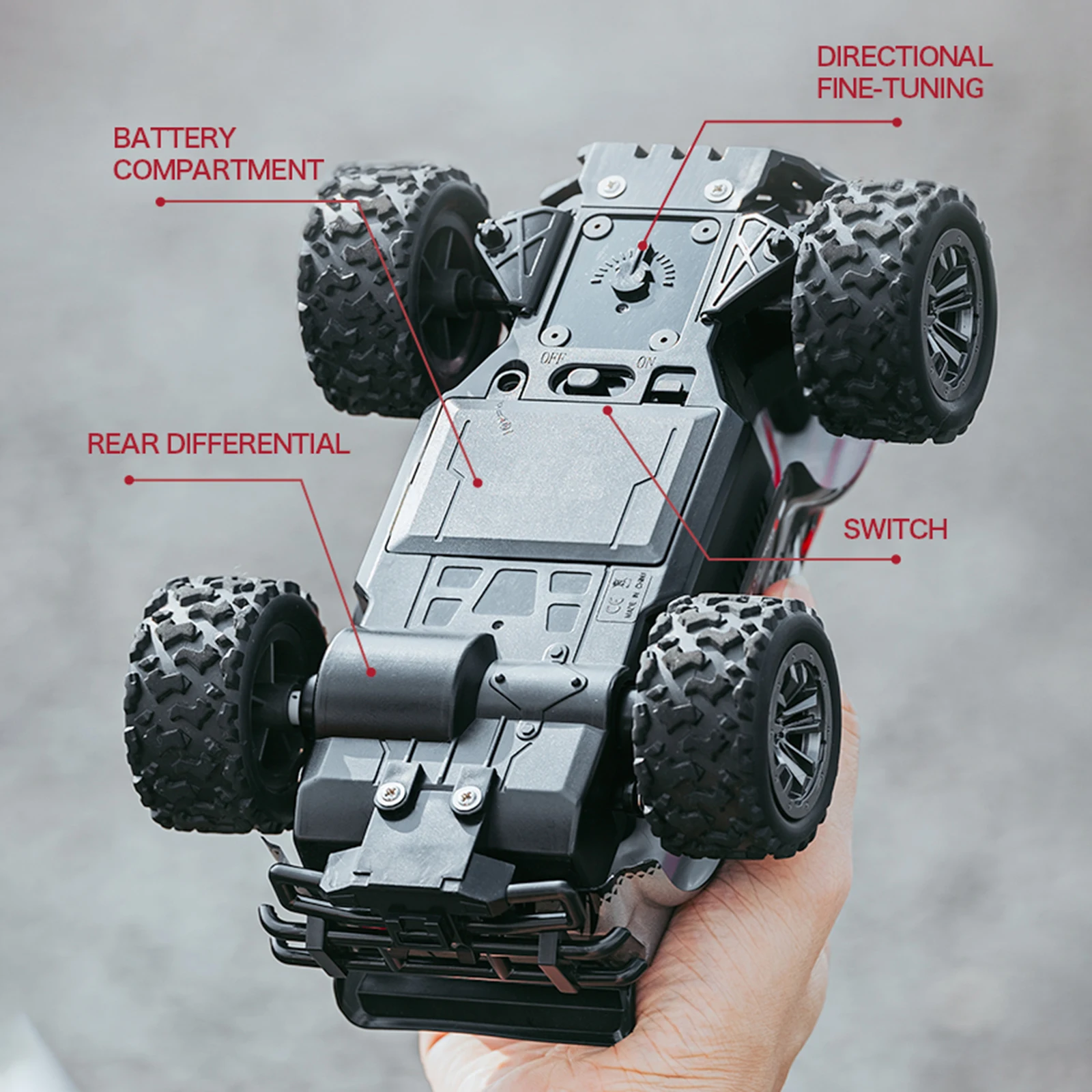 Off-Road Climbing Ability: Equipped with oversized tires and a superior drive system, the RC stunt vehicle excels in off-road climbing. It adeptly handles various terrains, including mountains, sand, and grass.