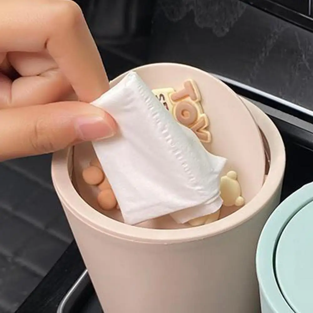 This car trash can is a convenient and practical solution for keeping your car tidy and organized. It has a compact size that fits easily on the front center console or under the rear seat, without taking up much space. It opens or closes with a gentle push, making it easy to use and dispose of trash. It also remains clean and hygienic, preventing odors and spills. You can also use it as a bathroom trash can for your home or office.