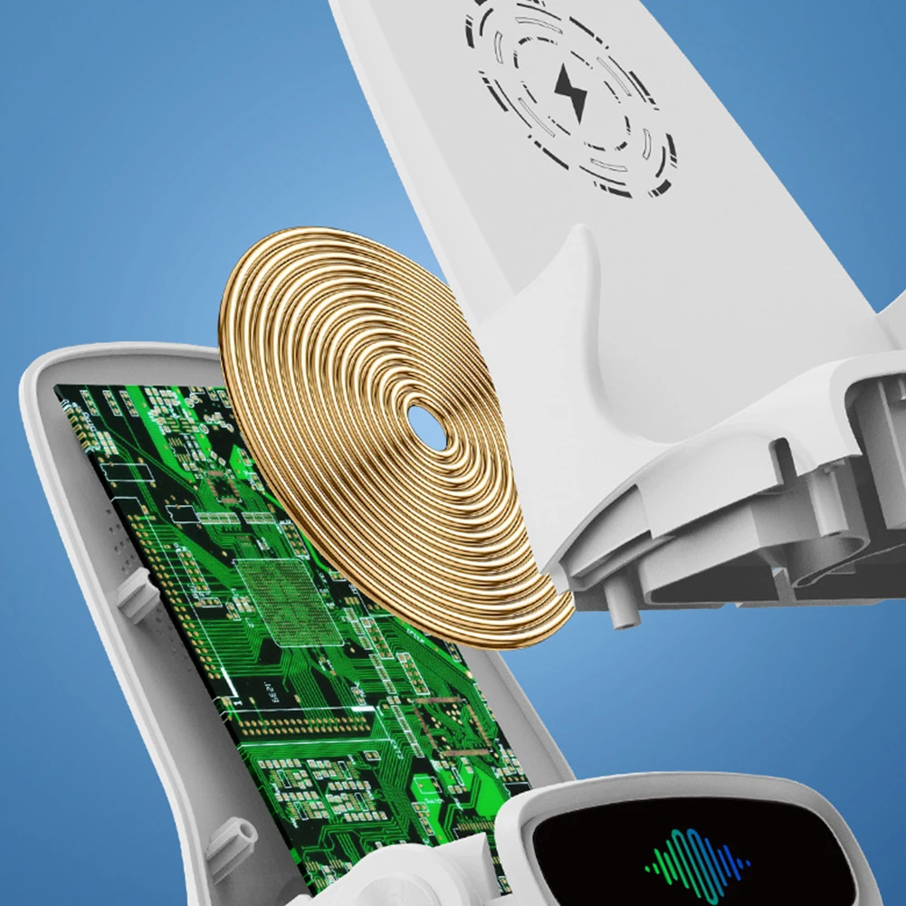 Ergonomic and Convenient: With a 15w wireless charging base designed following ergonomic visual standards, this charger is ideal for face recognition, movie watching, texting, hands-free calls, and live chats. It offers an efficient and comfortable user experience.