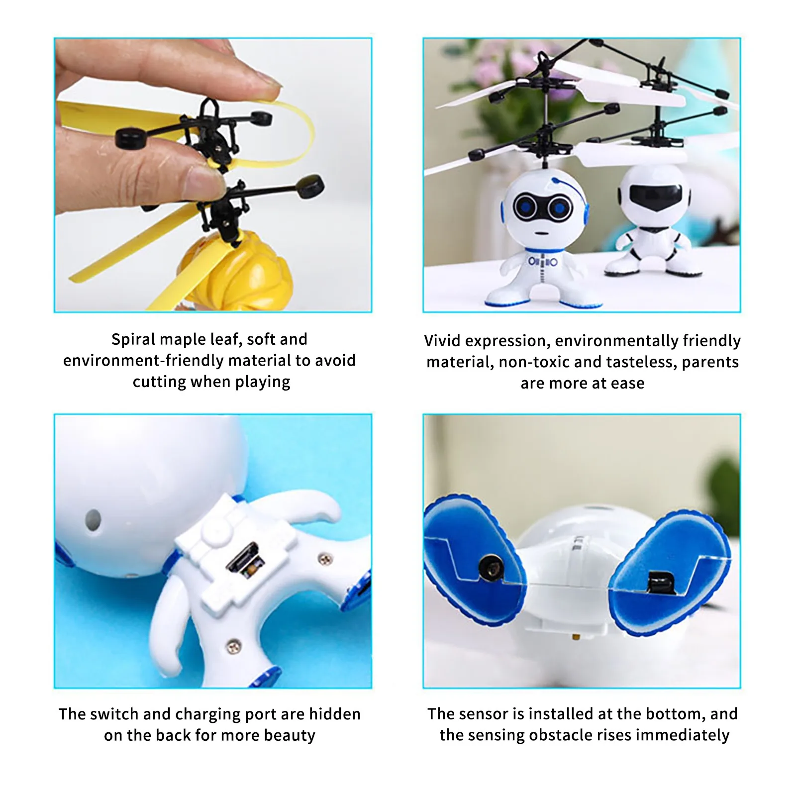 - Ideal Gift: An excellent present for children, the Flying Mini Induction Robot Aircraft comes with flashing light toys.