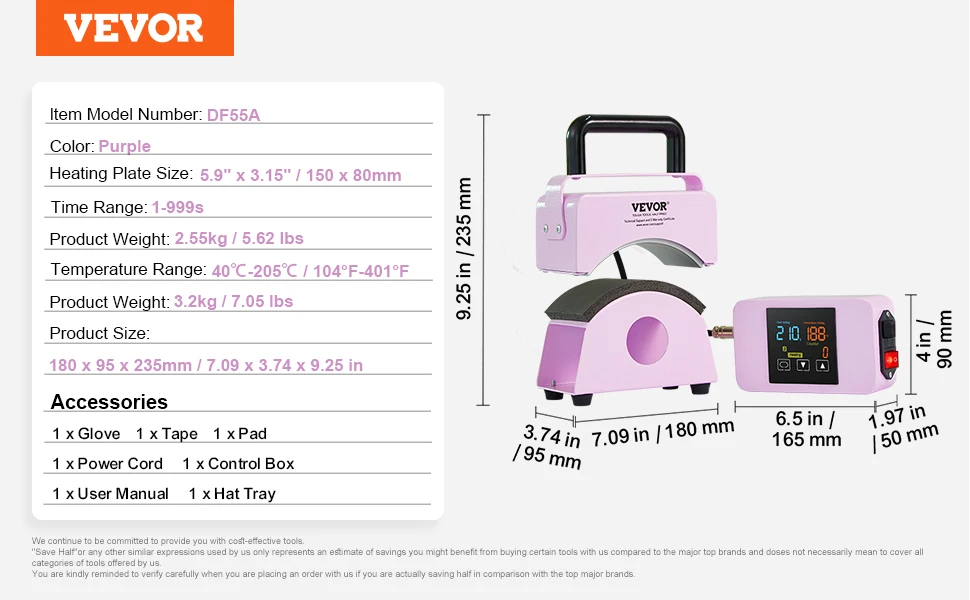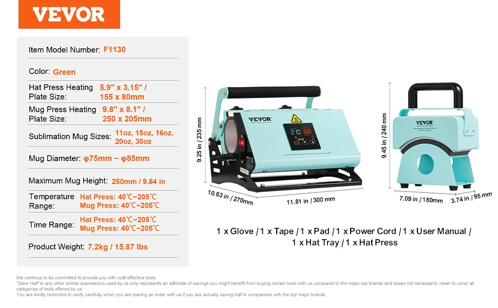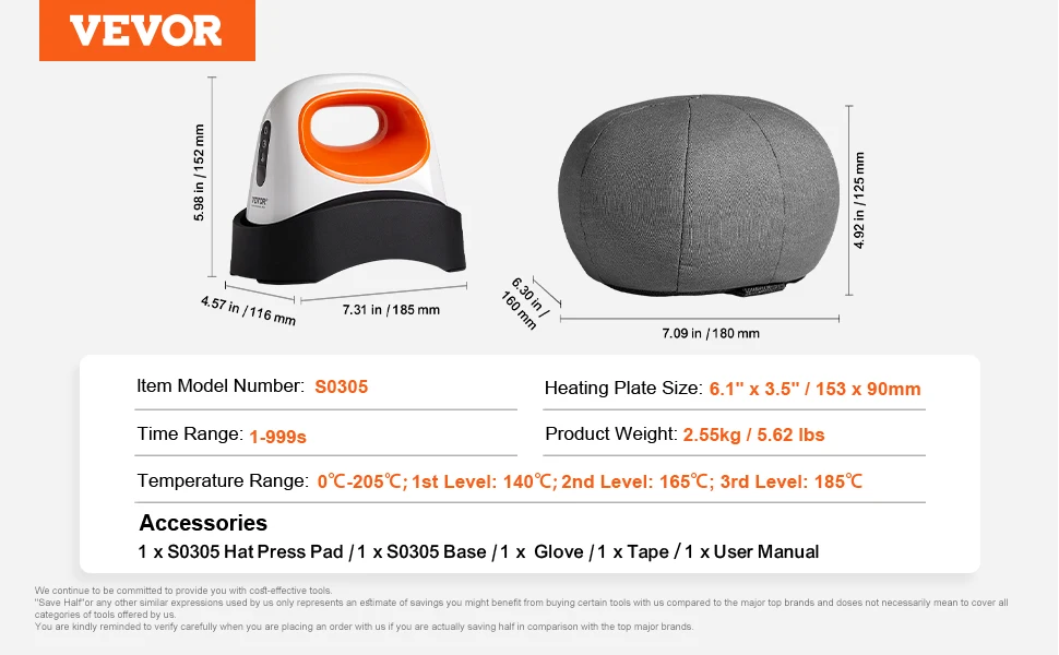 Efficient and Convenient: The hat heat press features a wide temperature range from 40°C to 205°C, catering to different material needs. Whether at low or high temperatures, achieve precise printing results with ease.