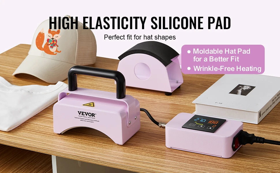 A high-elasticity silicone pad press ensures no creases during heating. Our hat cap heat press is flexible to fit different shapes and sizes, maintaining the cap’s original appearance and quality.
