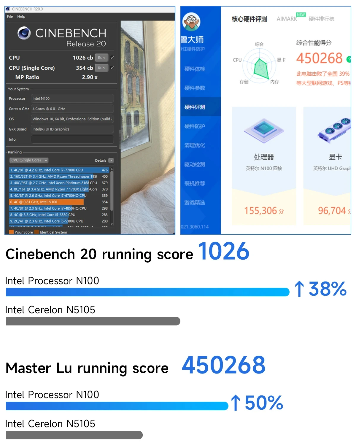 Central Processing Unit (CPU): Intel® 12th generation processor N series, four cores and four threads, 10nm technology, maximum frequency 3.4GHz