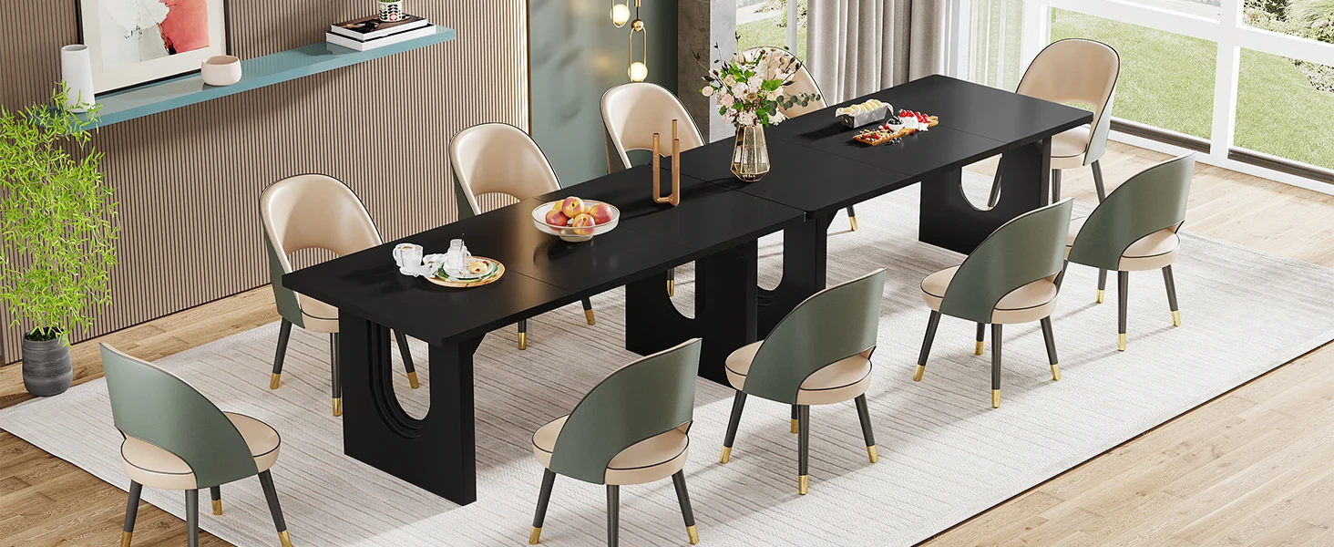 Versatile Dining Table: This rectangular piece adapts easily—use it as a dining table for up to 8, a makeshift workbench, an executive desk, a large computer desk, or even a small conference table when needed.