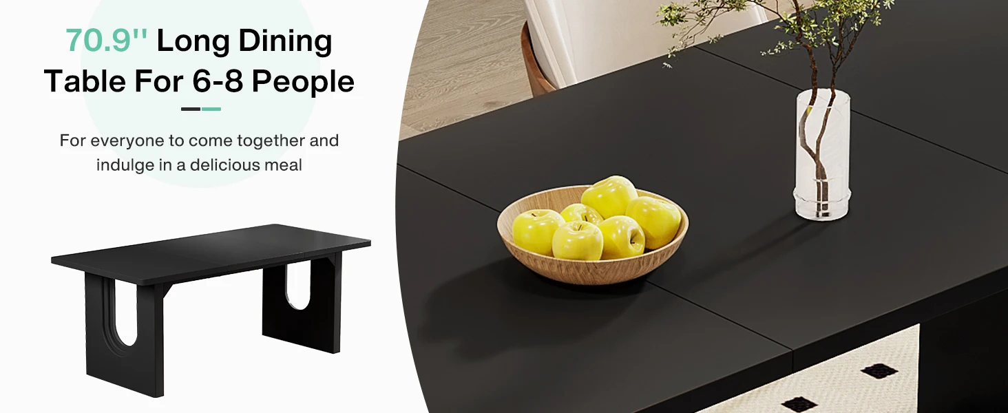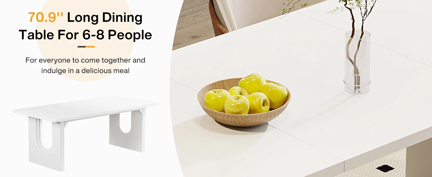 Ample Space for Enjoyment: Measuring 70.8″ L x 31.5″ W x 29.5″ H, the table comfortably seats 6–8 people. The generous top provides room for everything from roast chicken and salads to desserts, making it ideal for family dinners and entertaining guests.