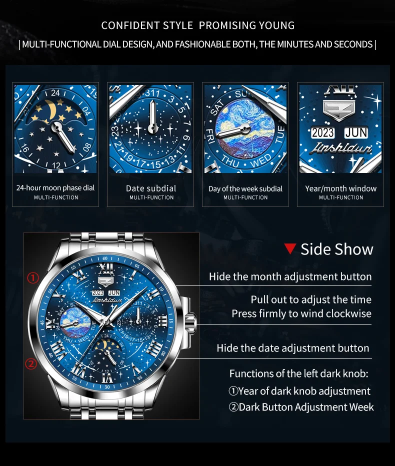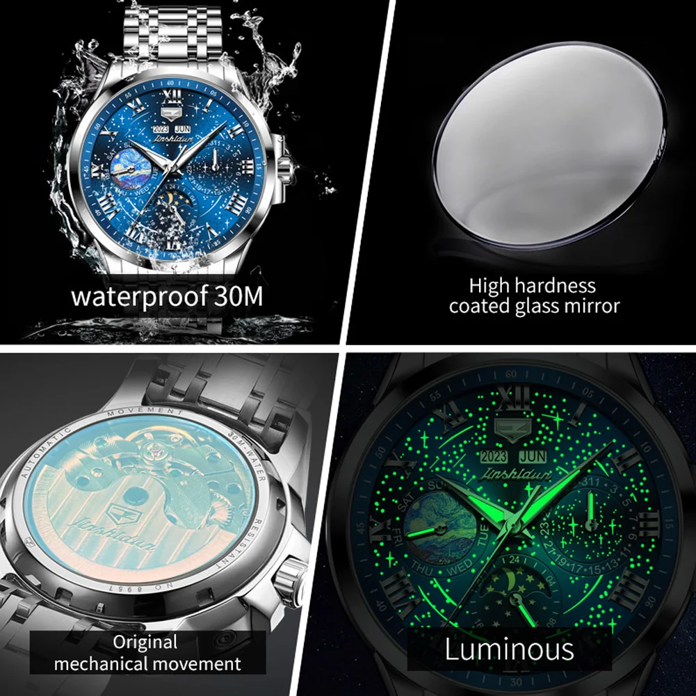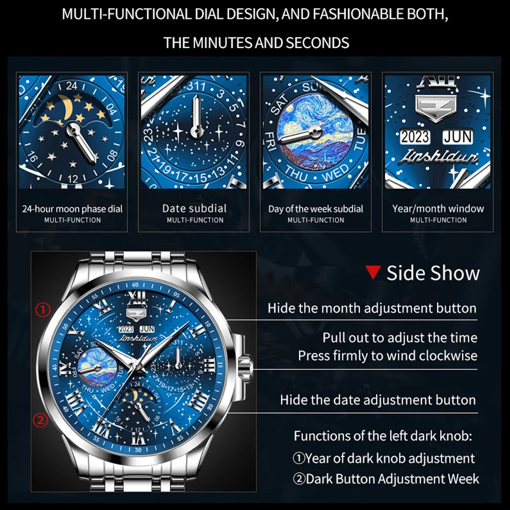 Discover the epitome of sophistication and functionality with our latest offering in men’s accessories. This multifunctional automatic mechanical wristwatch is not just a timepiece but a statement of style and efficiency. Designed for the modern man who appreciates the finer things in life, this watch combines elegance with practicality, making it a perfect companion for both business and leisure.