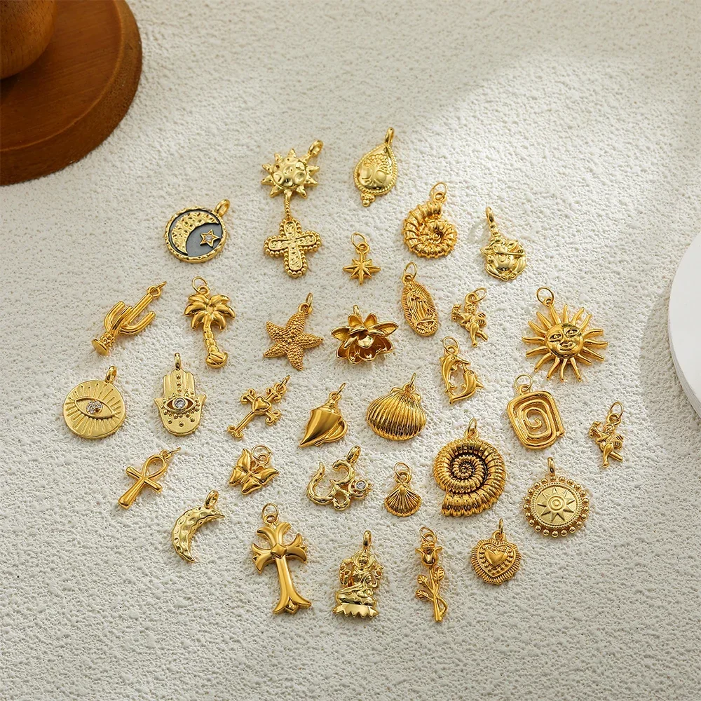 Express your energy, spirit, and beliefs with this beautifully crafted Waterproof Gold Symbol Pendant Necklace. Featuring an elegant stainless steel design with symbolic charms like the moon, sun, evil eye, lotus, and more, this necklace offers a meaningful way to wear your favorite spiritual or protective symbol close to your heart.