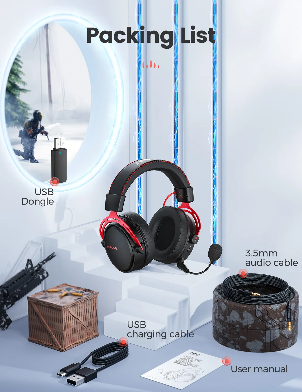 - Model: Mpow Air 2.4G Wireless Gaming Headset
