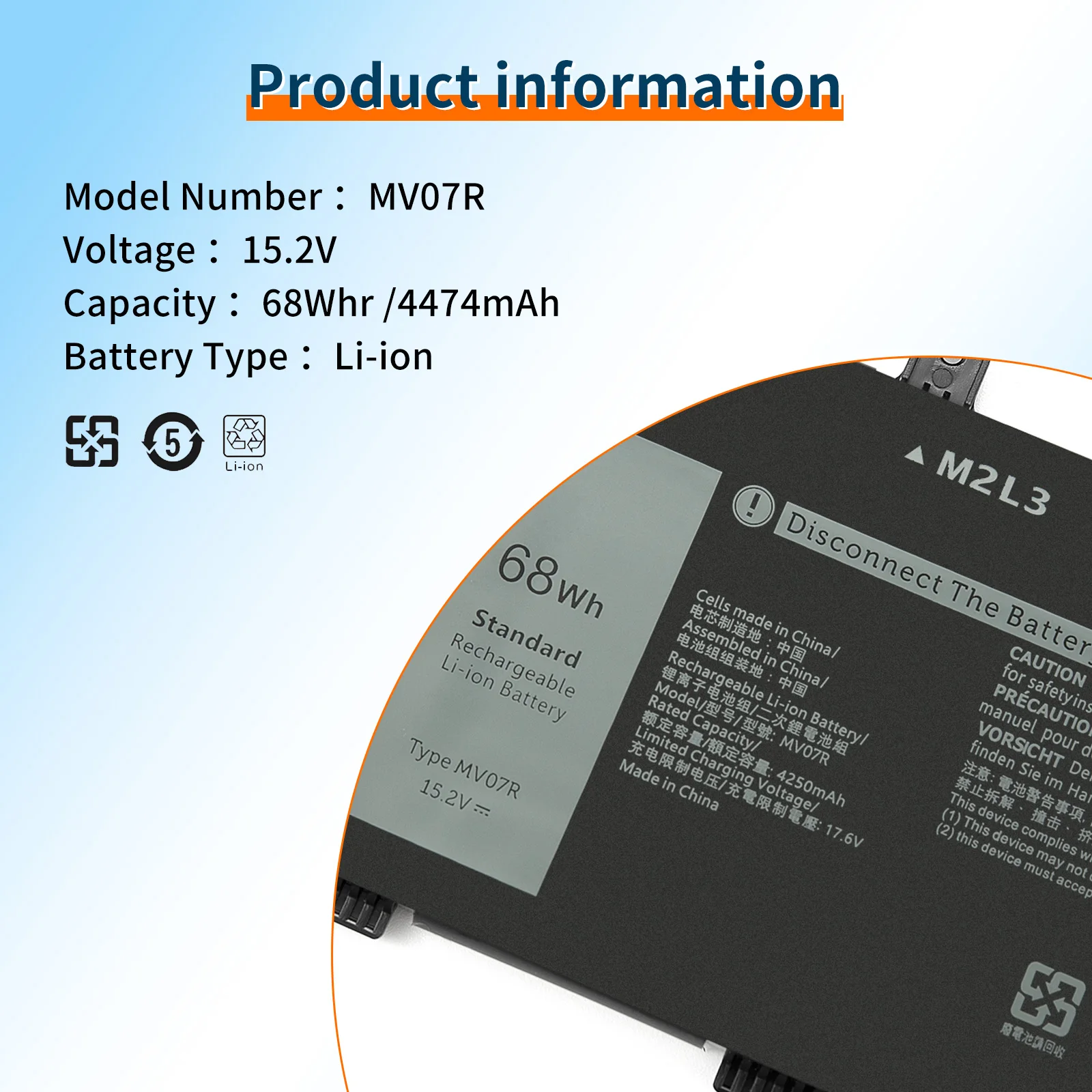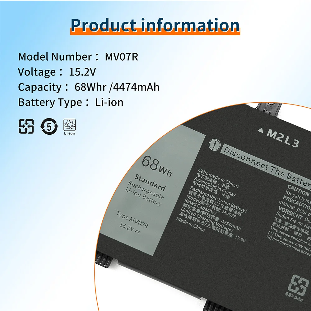 Power your laptop with confidence using this premium Dell MV07R replacement battery. Featuring a robust 15.2V 68Wh 4474mAh lithium-ion capacity, this battery delivers outstanding runtime and unmatched reliability. Whether gaming, working, or streaming, this battery is designed to meet the highest standards of performance and safety.