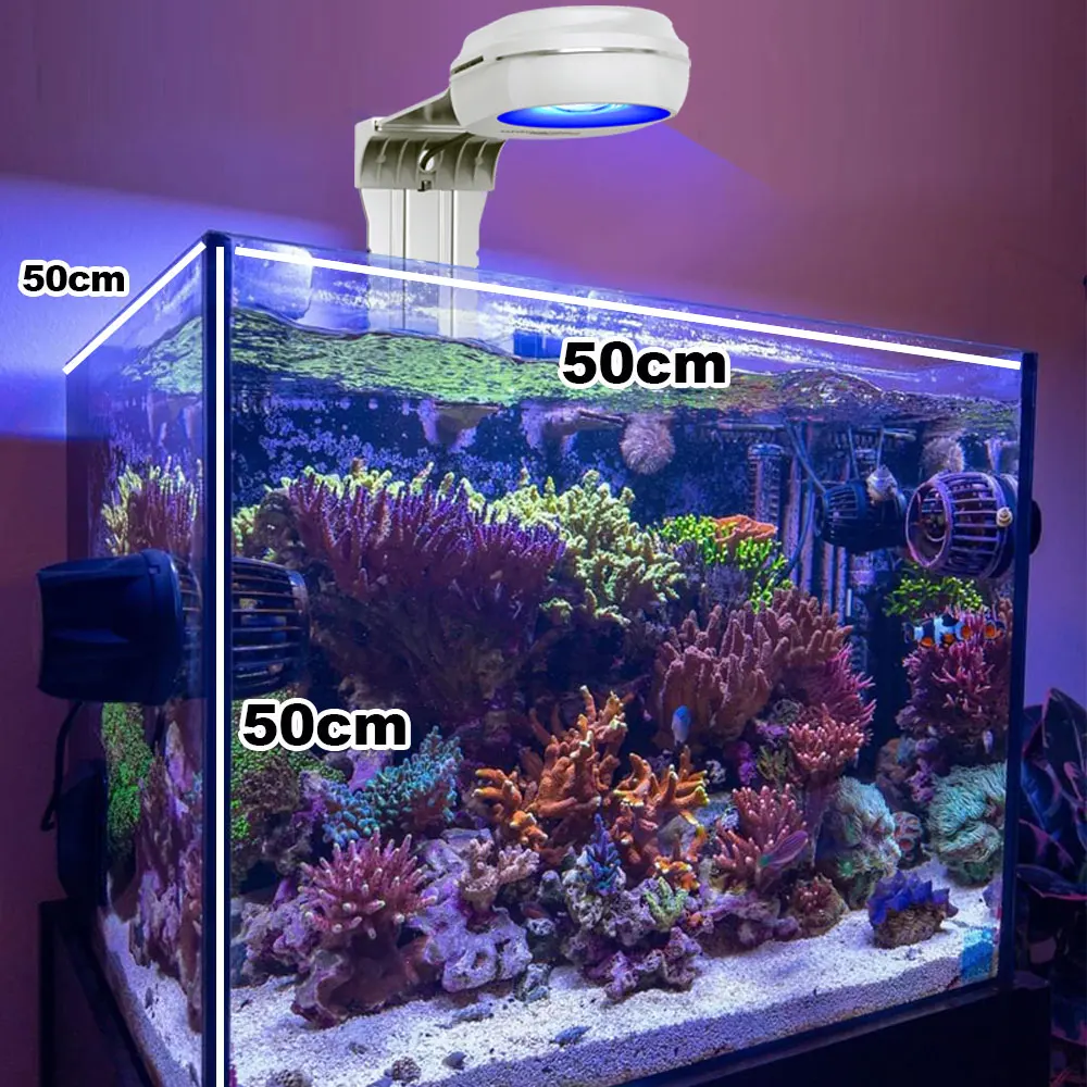 - Full Spectrum LED Lighting – Includes UV, blue, white, red, and green wavelengths tailored for coral growth and color enhancement.